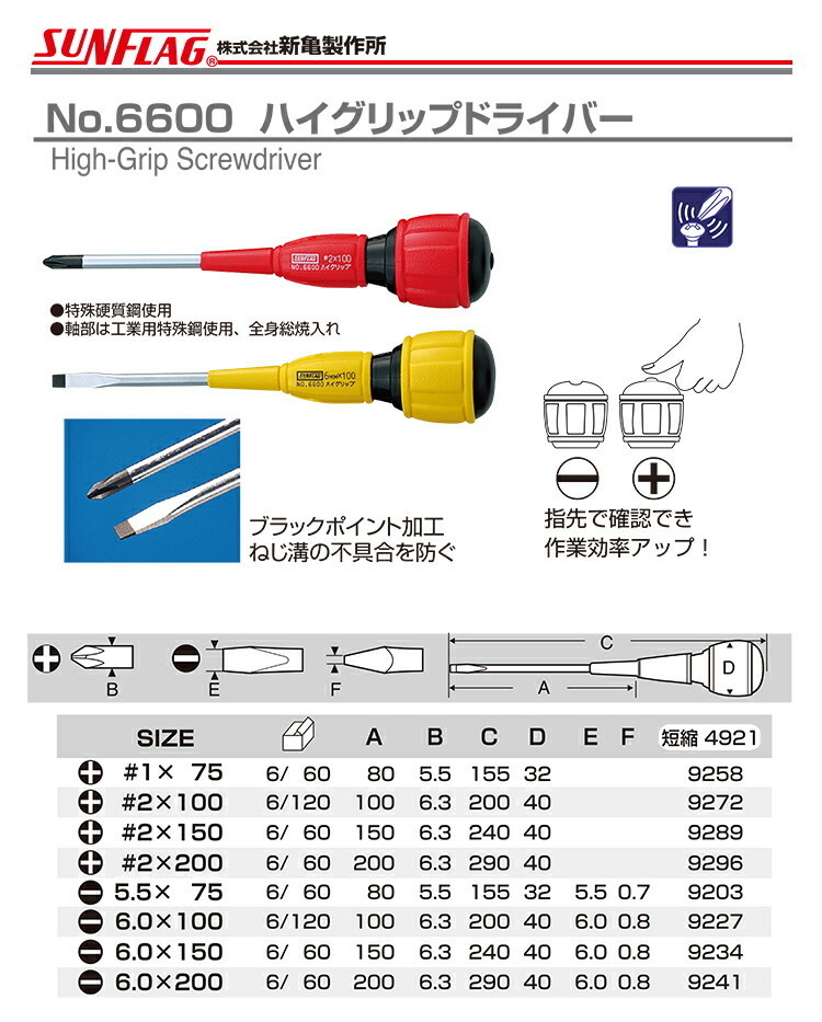 【オススメ】【数量限定】〈SUNFLAG〉ハイグリップドライバー +2×150 No.6600