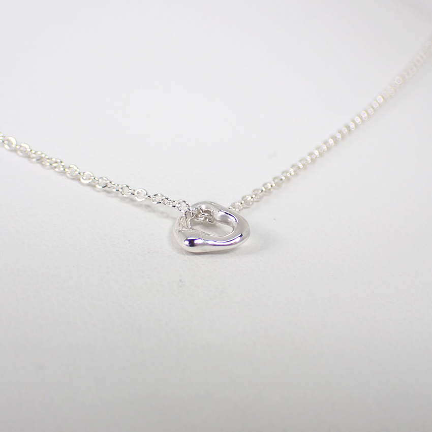 ティファニーの中でも一番小さいサイズのオープンハートになります。すっきりとした流れるようなデザインで、時代を超えて愛されるティファニーを代表するエレガントなペンダントです。