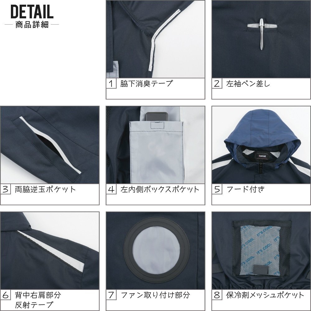 特長:脇下消臭テープ/フード付き/背中右肩部分反射テープ