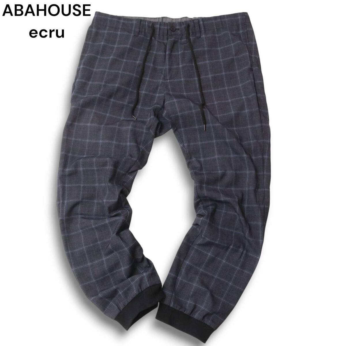 ABAHOUSE ecru アバハウス エクリュ 春夏 ストレッチ★ イージー チェック ジョガー テーパード パンツ Sz.3 メンズ グレー