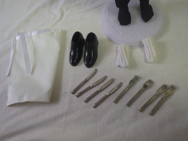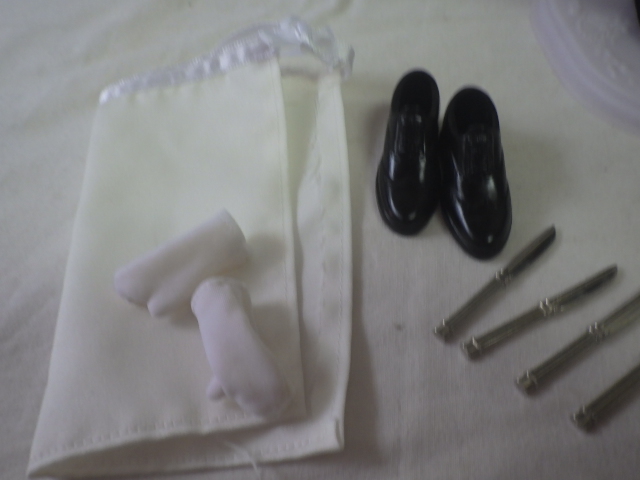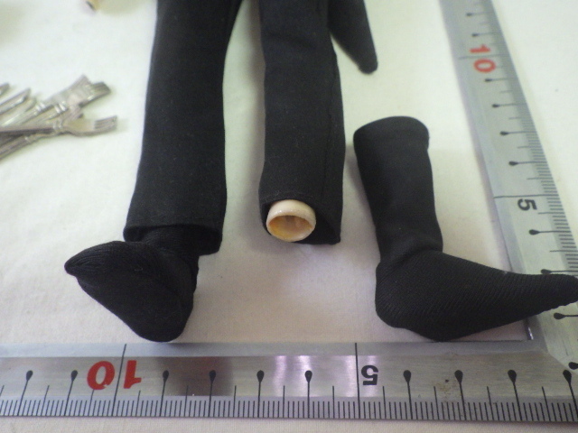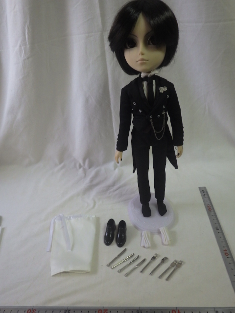 画像にあるものですべてです。 画像は明かりのためかかなりきれいに写りました。 もう少し状態は悪いとお考えください。 現状渡しです。 複数で出品しているものに関し、ばらうりはしておりません。 古いものは簡易清掃をしておりますが、奥に入り込んで取れない埃汚れなどもございます。 箱はありません。 手袋エプロン、カトラリーなど小物あります。 スタンドあり。 靴はべたつきが感じられます(このため脱がせて保管してます) 左足首が抜けやすく、靴下で固定している感じです。 着せるのが大変なのですべて脱がせてのチェックはしていません 黒い服なので色移りはあるとお考えください。 メイクに明らかな剥がれや傷は見当たりません 全体的に色あせるなどは経年から考えられるかと思います。 中古品です。美品をお求めの方は入札をお控えください。 以上を踏まえ、ノンクレーム・ノーリターンにてお願いいたします。 入札後および、落札後のキャンセルはトラブルの元となるため、一切お受けいたしません。 また、評価の悪い方はこちらの判断で削除する場合がありますのでご了承願います。 その他、ミニカーやチョロQ、特撮,戦隊,ヒーロー物や超合金にソフビ等など、おもちゃ中心に色々出品しています。覗いてみてください。 | ||||