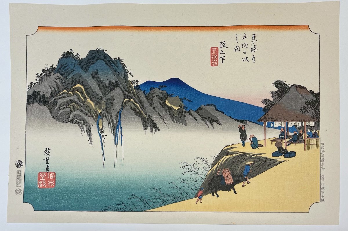 【真作】歌川広重「東海道五十三次 阪之下-49」木版 保永堂版 浮世絵 錦絵【広重不朽の名作 日本が世界に誇る木版画 woodblock print】