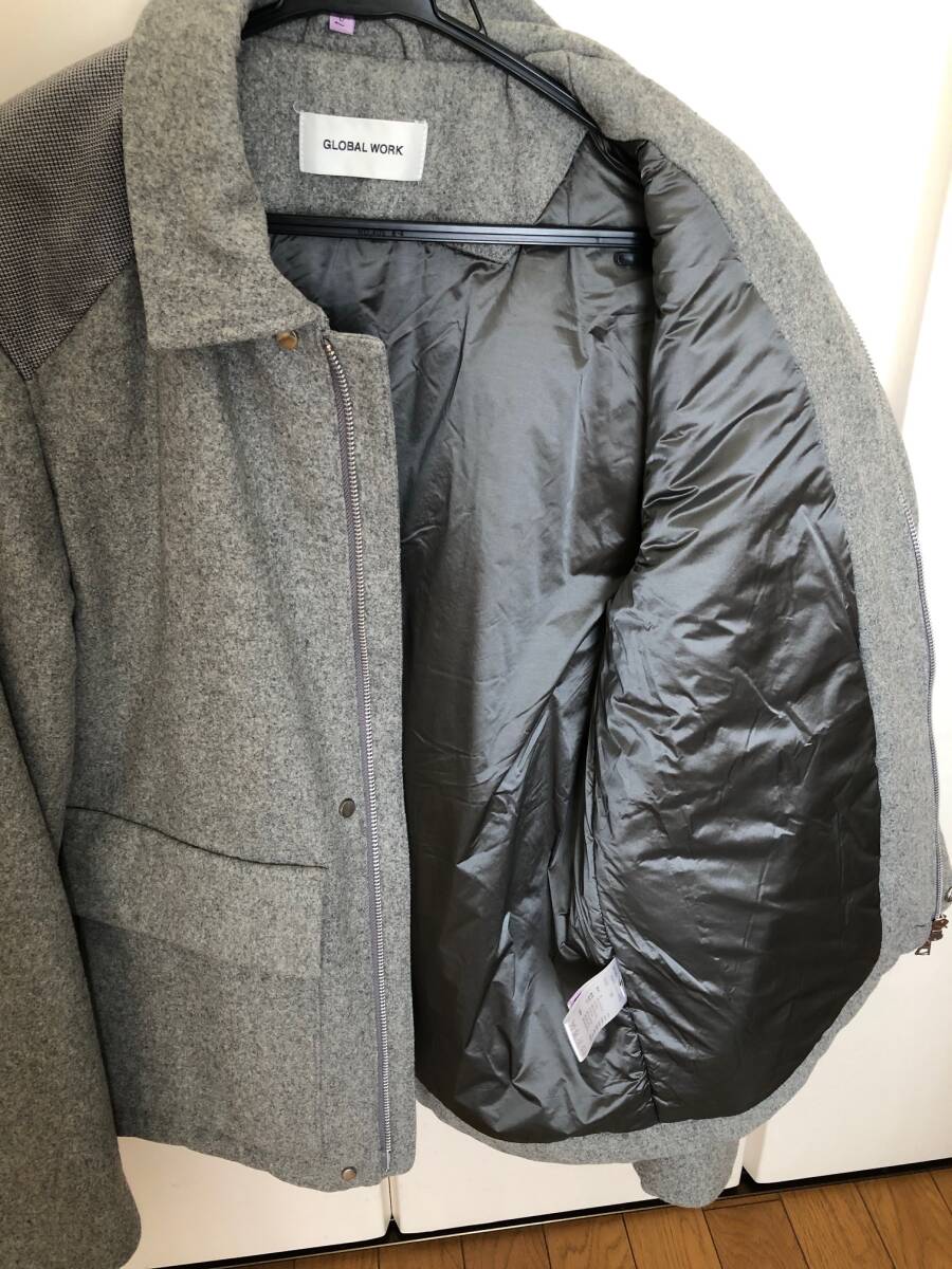 美品 クリーニング済 GLOBAL WORK 毛昆 グレー系メンズ コート M