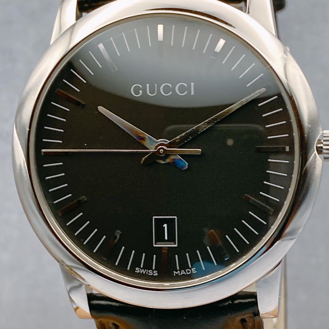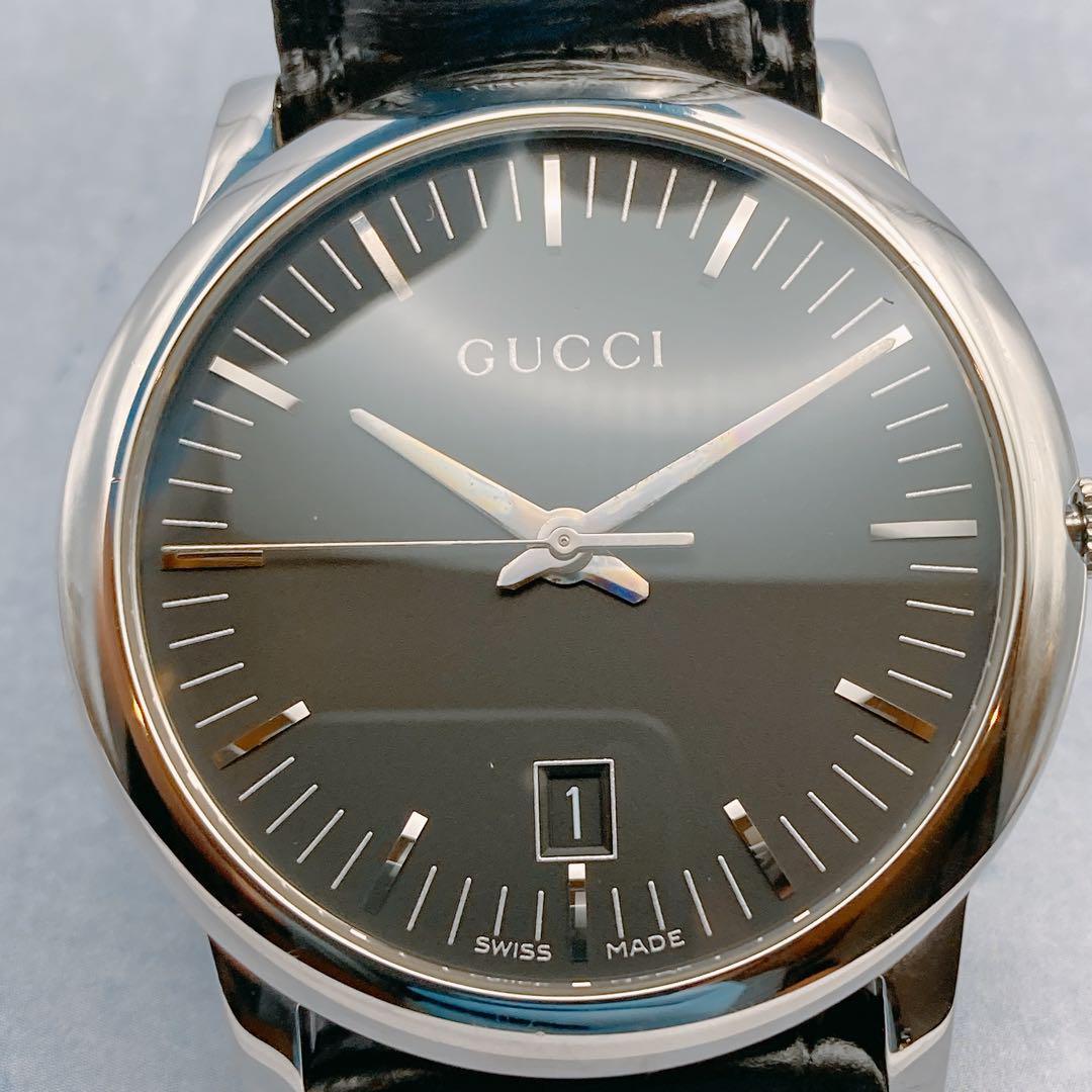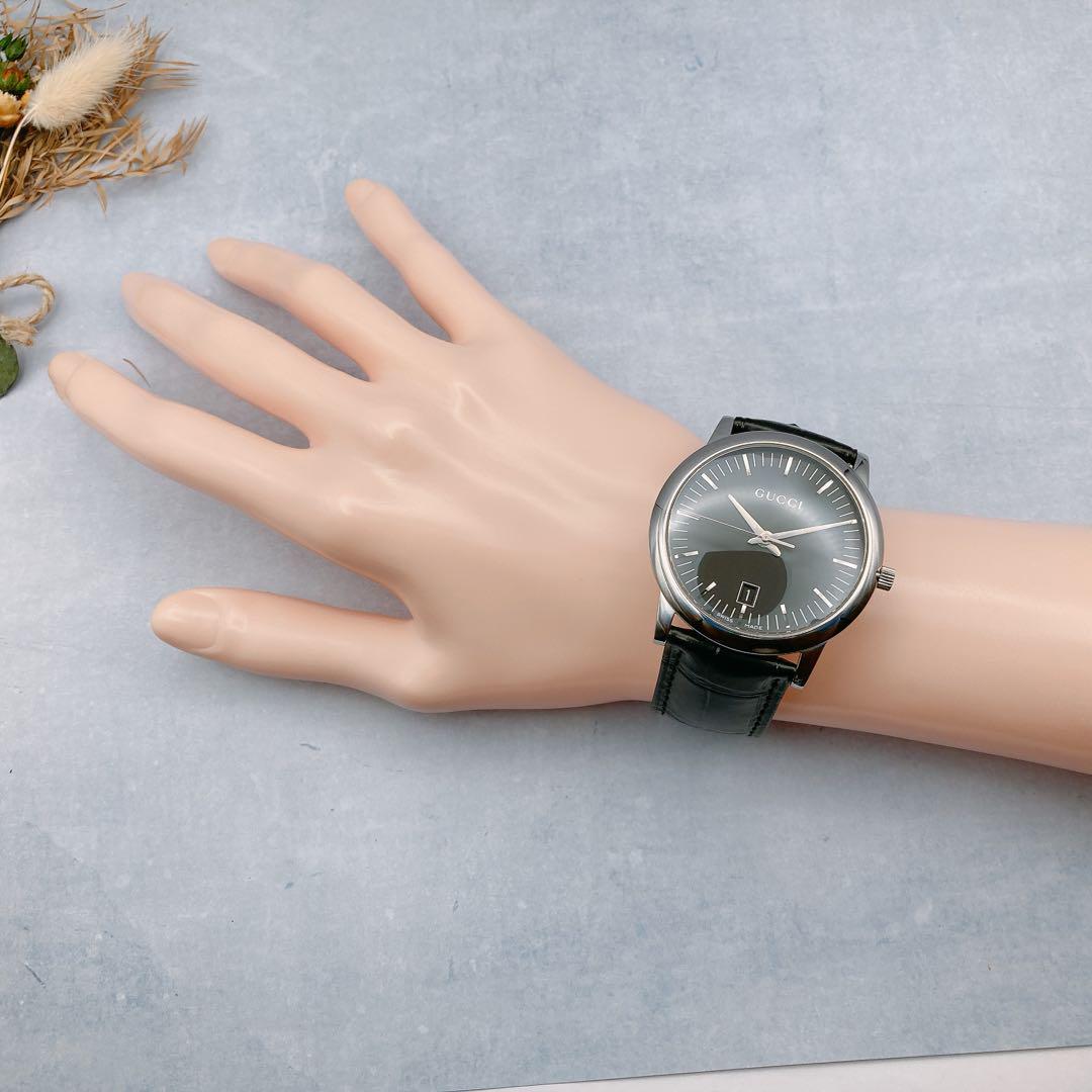 シンプルでエレガントなデザインのGUCCIのクォーツ腕時計。