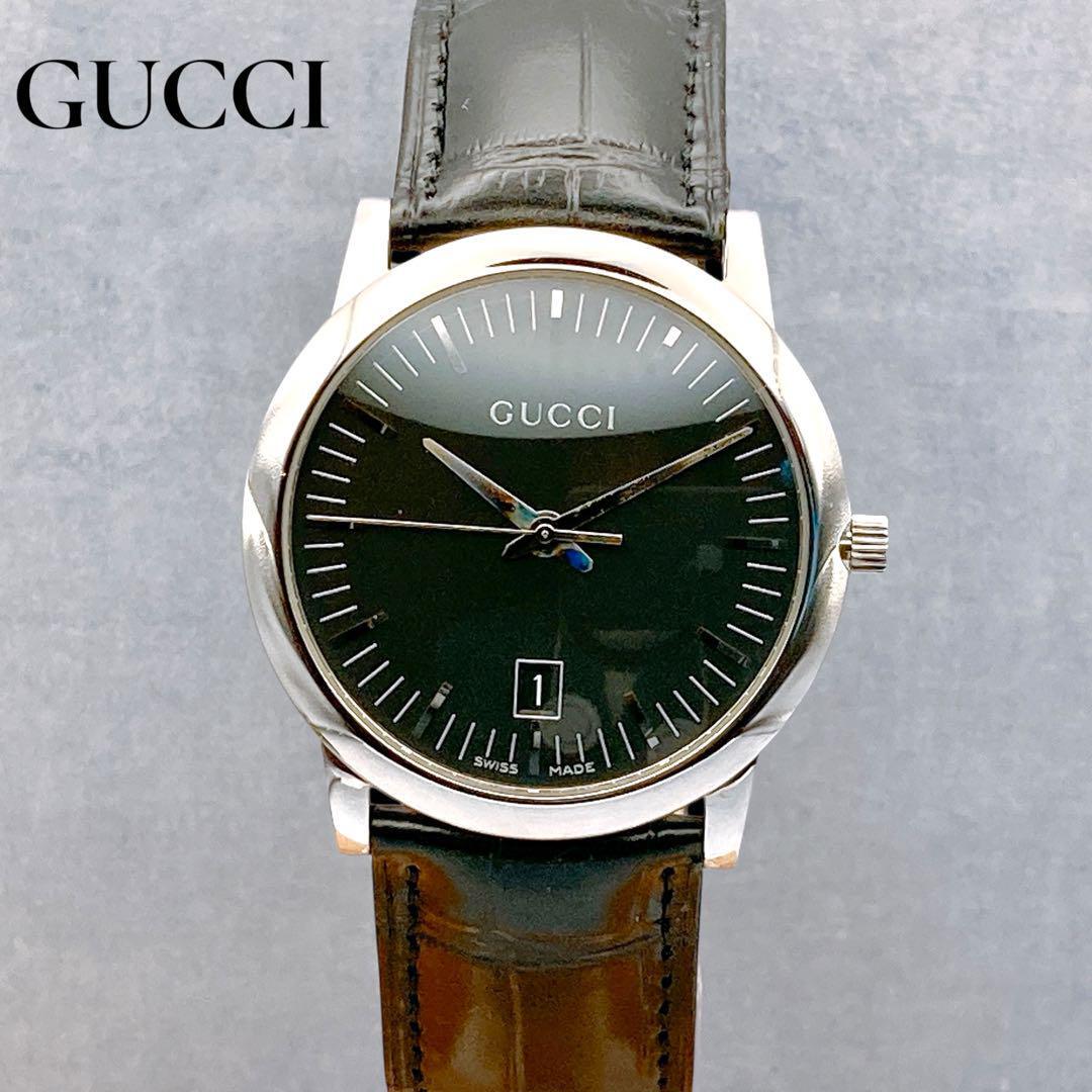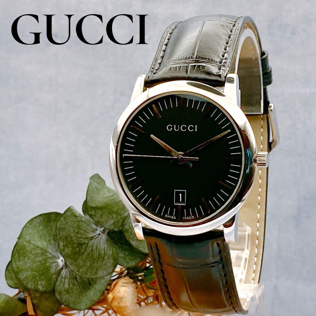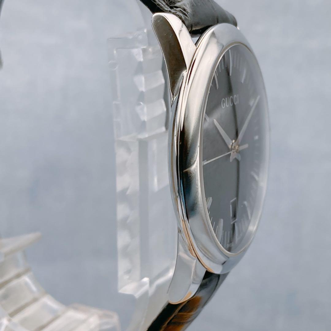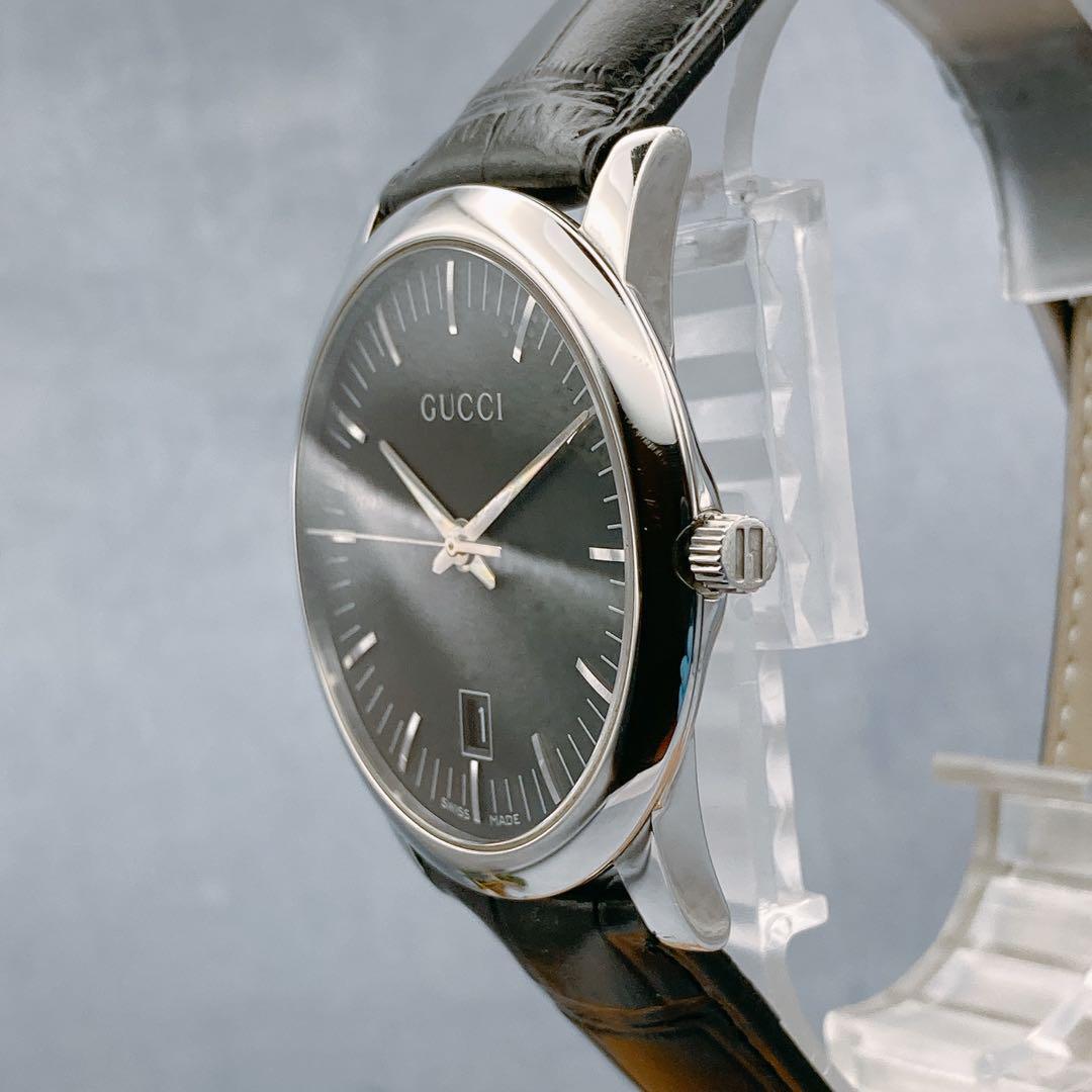 シンプルでエレガントなデザインのGUCCIのクォーツ腕時計。