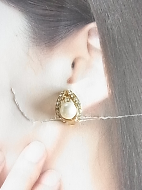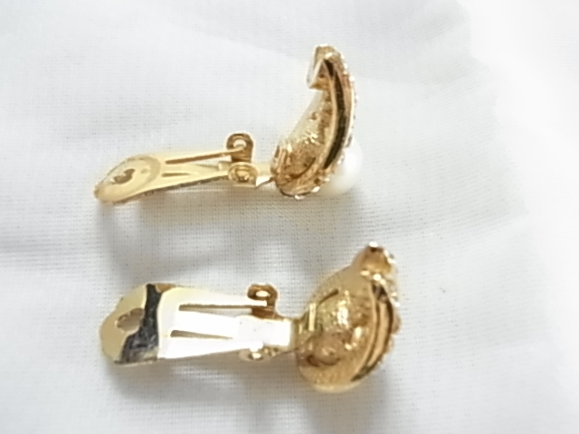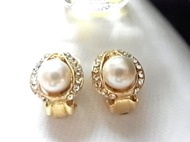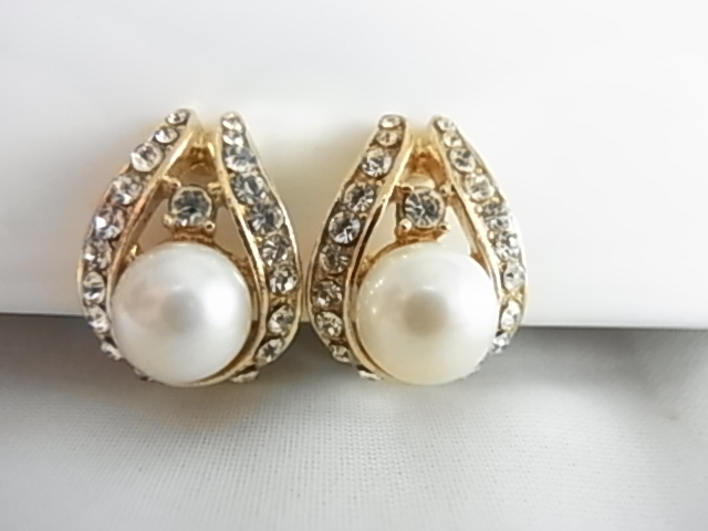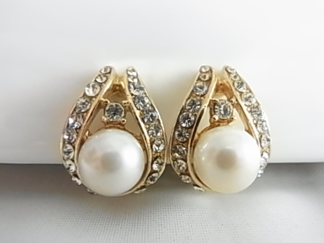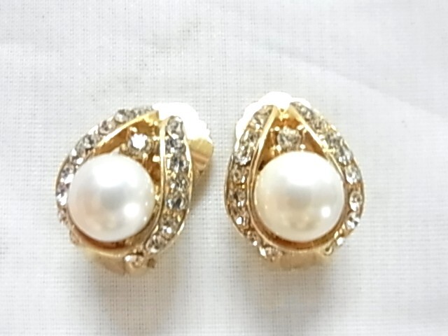 ビンテージ/ヴィンテージ クリアラインストーンが1粒のイミテーションパールを囲む豪華感のデザイン 輝き煌く素敵なイヤリング♪♪