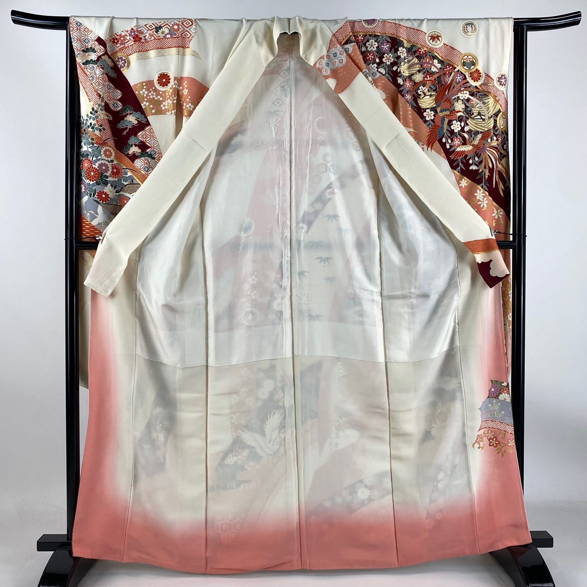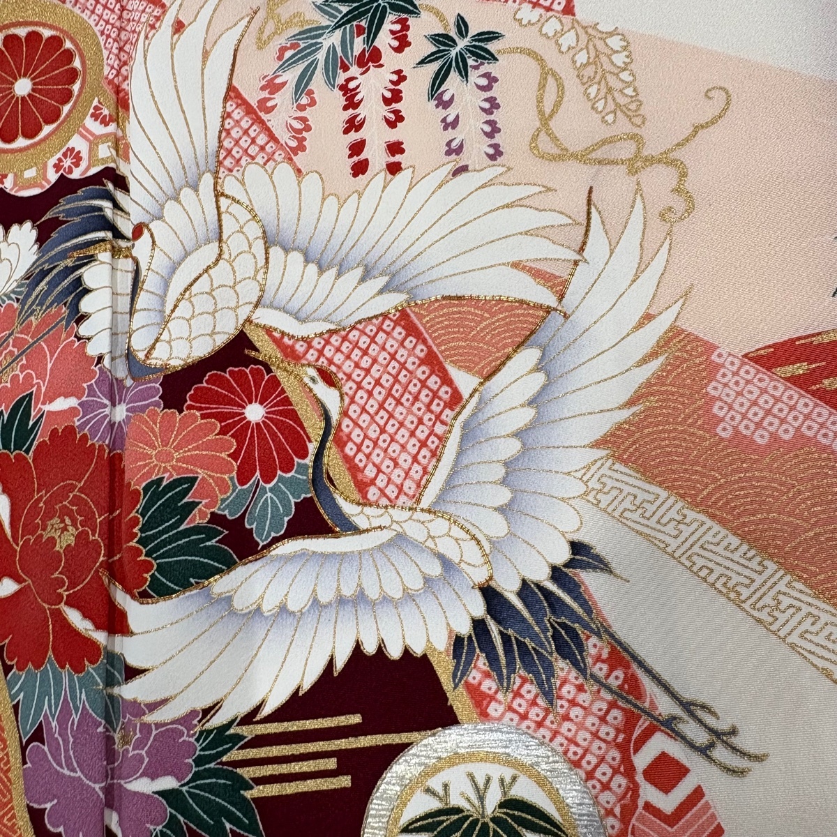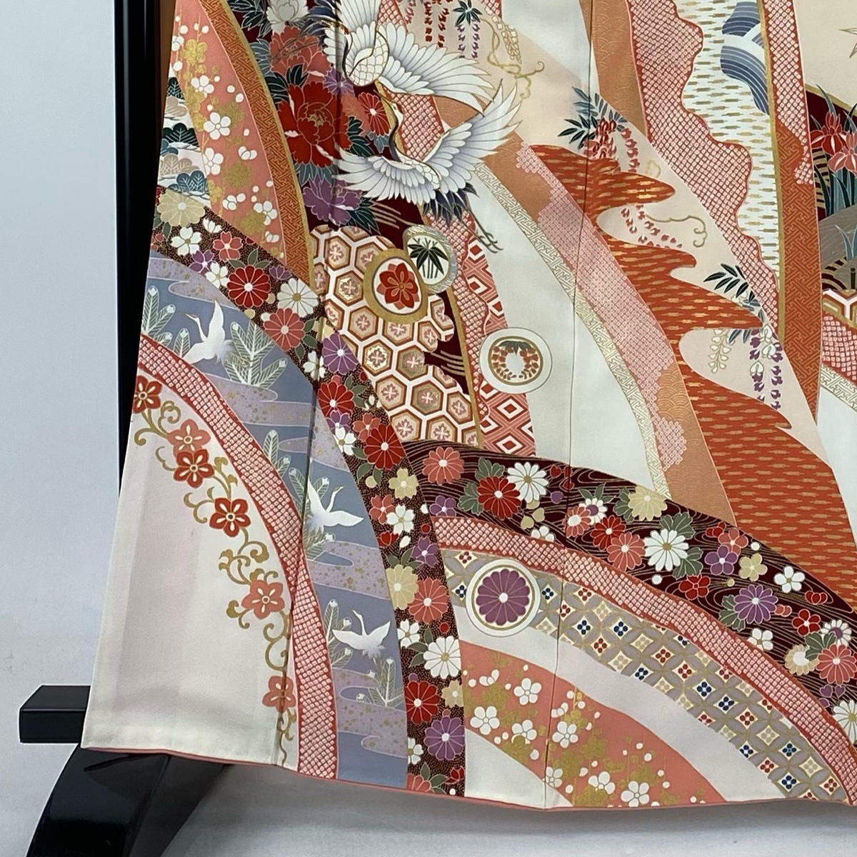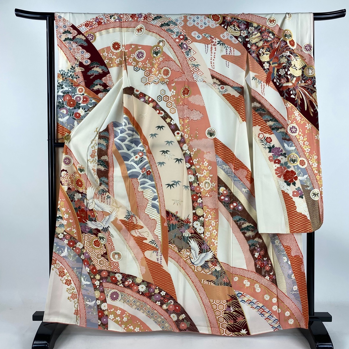 | 振袖 秀品 鶴 松竹梅 金糸 金銀彩 クリーム 袷 身丈163 裄丈66.5 M 正絹 【中古】 |