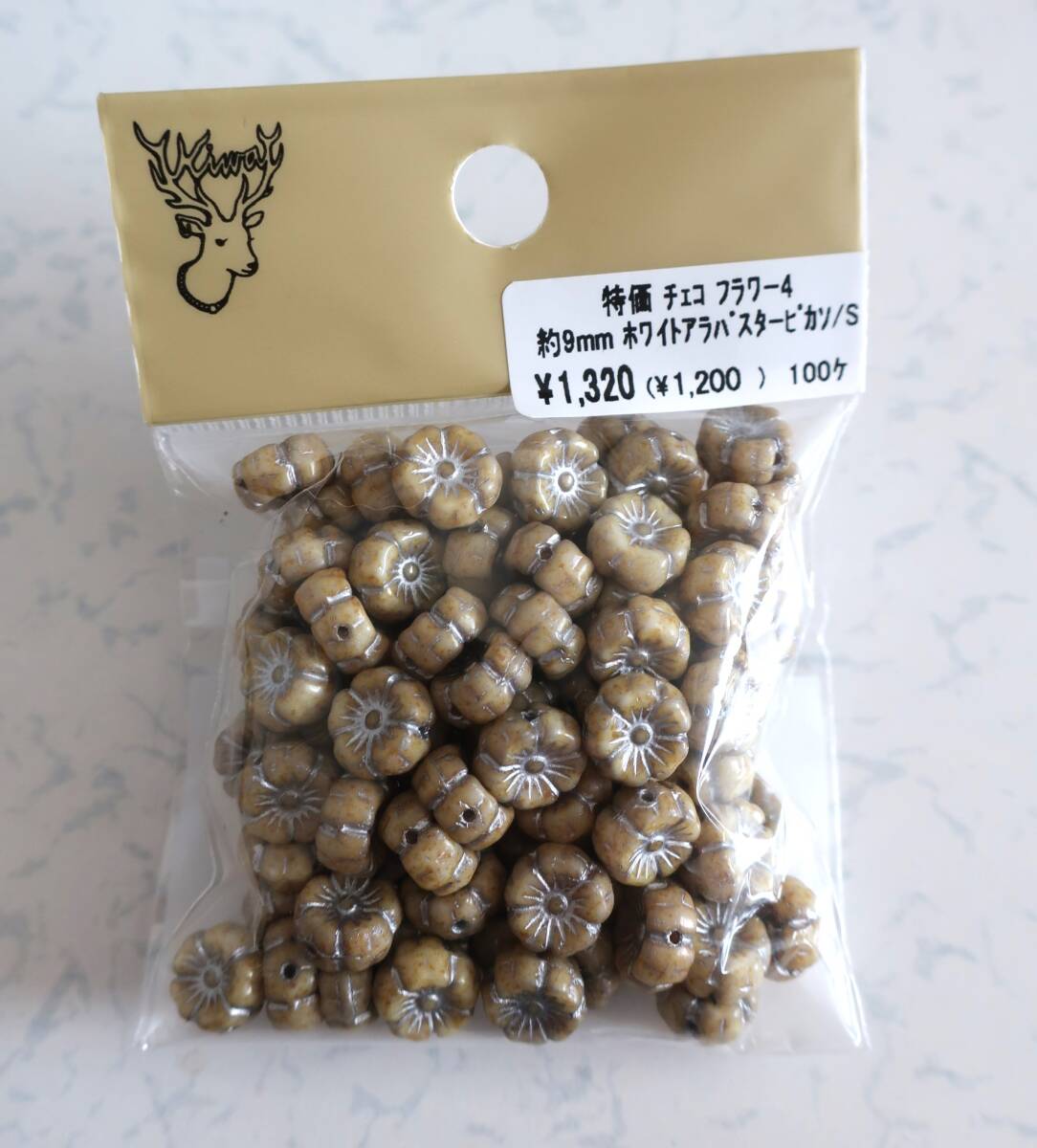 新品★ チェコビーズ フラワー4 約9mm ホワイトアラバスターピカソ/S 100個