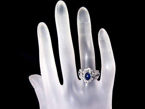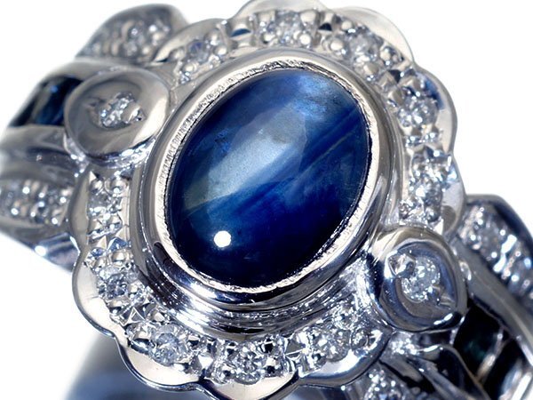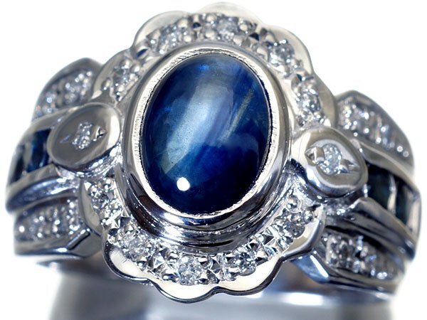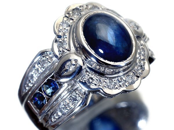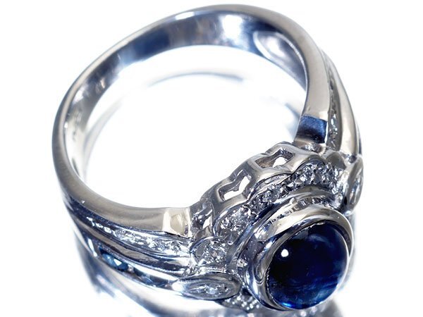 濃厚で綺麗な色合い放つカボションカット良質天然ブルーサファイア総計2.2ct&ダイヤモンド総計0.2ctを素敵に宝飾した、超高級Pt900リングを1円から特別大放出致します!