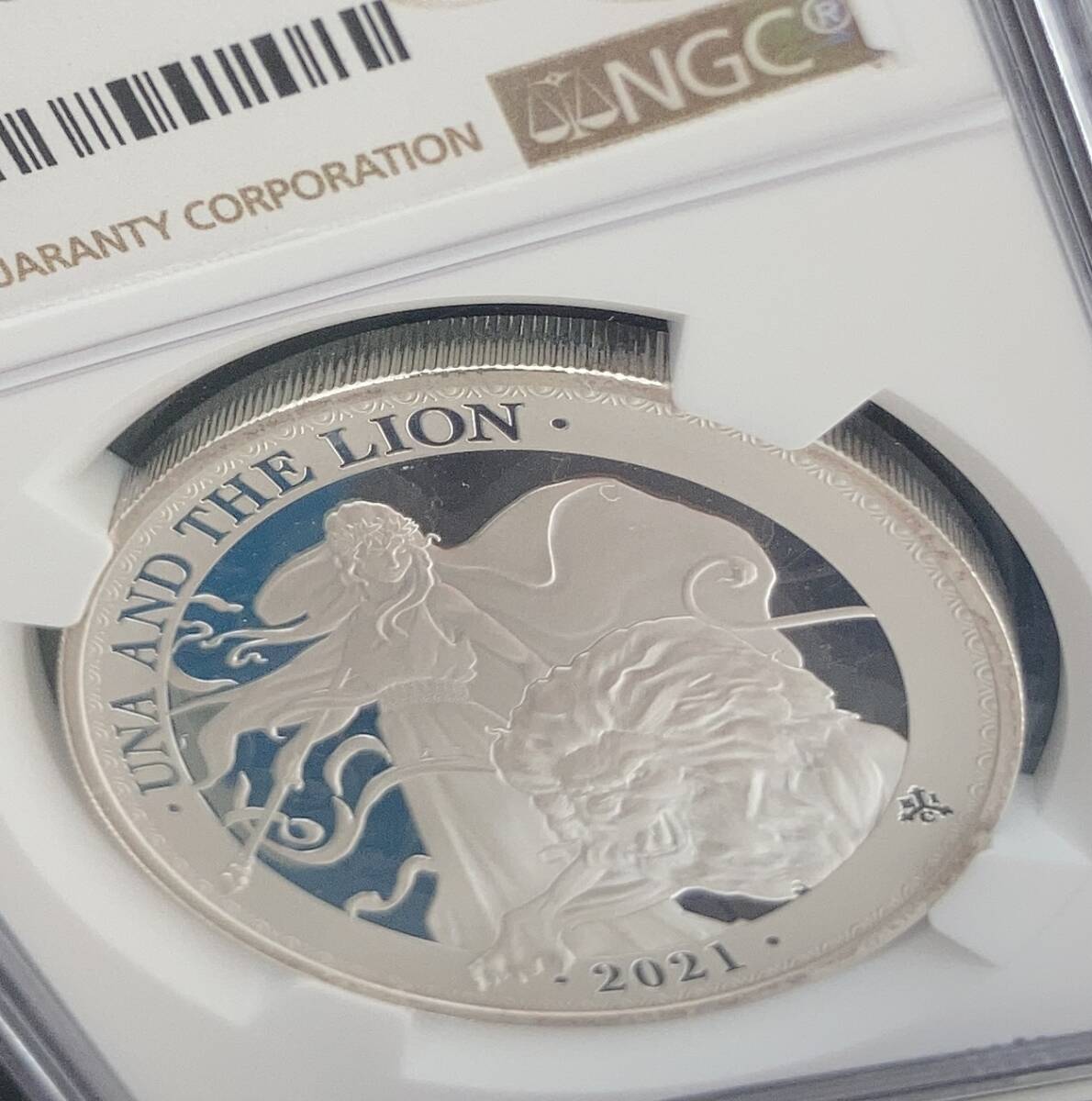 【ウナ&ライオン】最高鑑定 PF70 UltraCameo エリザベス2世 ReededEdge 2021年 英領 セントヘレナ 銀貨 1ポンド 東インド会社 NGC 資産防衛