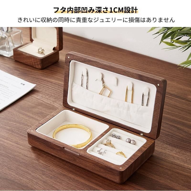 ■カラー:ウォールナット材+グレー起毛布、ウォールナット材+白起毛布、桜の木+白起毛布 ■サイズ:幅9.5cm/長さ16.5cm/高さ4.5cm ■素材:ウォールナット材 桜の木 ベルベット ■重量:約0.3kg ・収納ケースは様々なジュエリーが収納可能、指輪やイヤリング、ネックレス、ブレスレット、 ピアス等のジュエリーのアクセサリー用小物入れとしても便利に活用できます。 ・外側は高品質の木製の材料を使用し、防水性と防塵性の機能があります。 ・内側は柔らかい生地を使用するので、ジュエリーなどの小物を保護しています。 ・コンパクトで使いやすく、シンプルで高級感のあるデザインがおしゃれなアクセサリー収納ケースです。 ・クリスマス、新年、誕生日、記念日、バレンタインデー ,感謝祭など時、プレゼントとしてもとても良いですね。