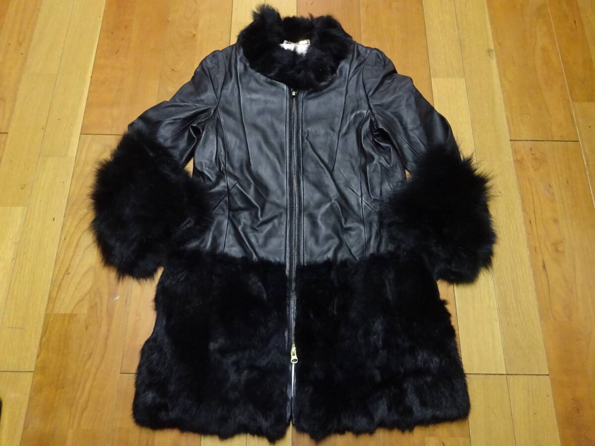 ■ま-58 ■Language 羊革レザージャケット ラビットファー サイズ不明