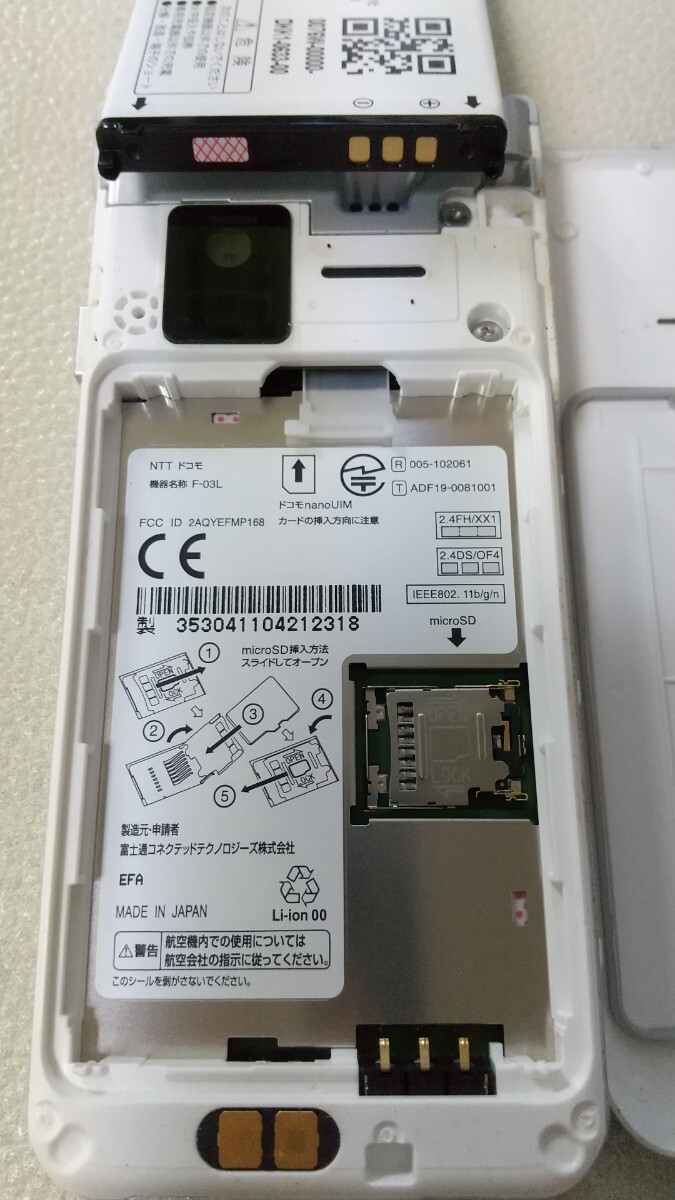 S3496 docomo SIMフリー ARROWSケータイ F-03L FUJITSU 4Gガラホ 簡易確認&簡易清掃&初期化OK 判定○ WebにてSIMロック解除手続受付済