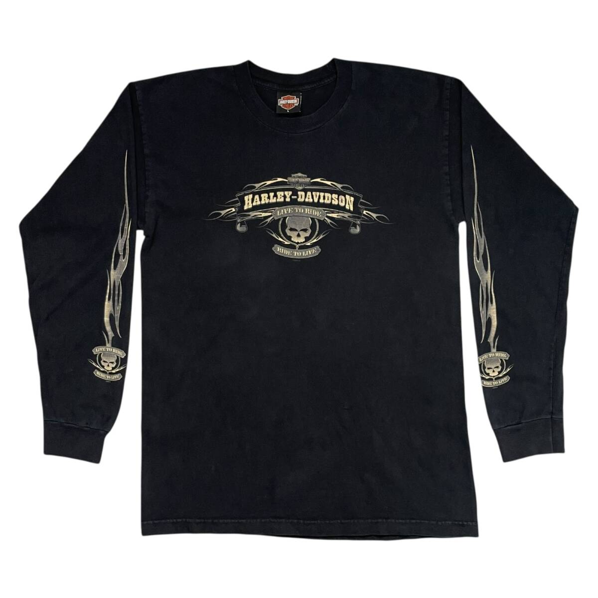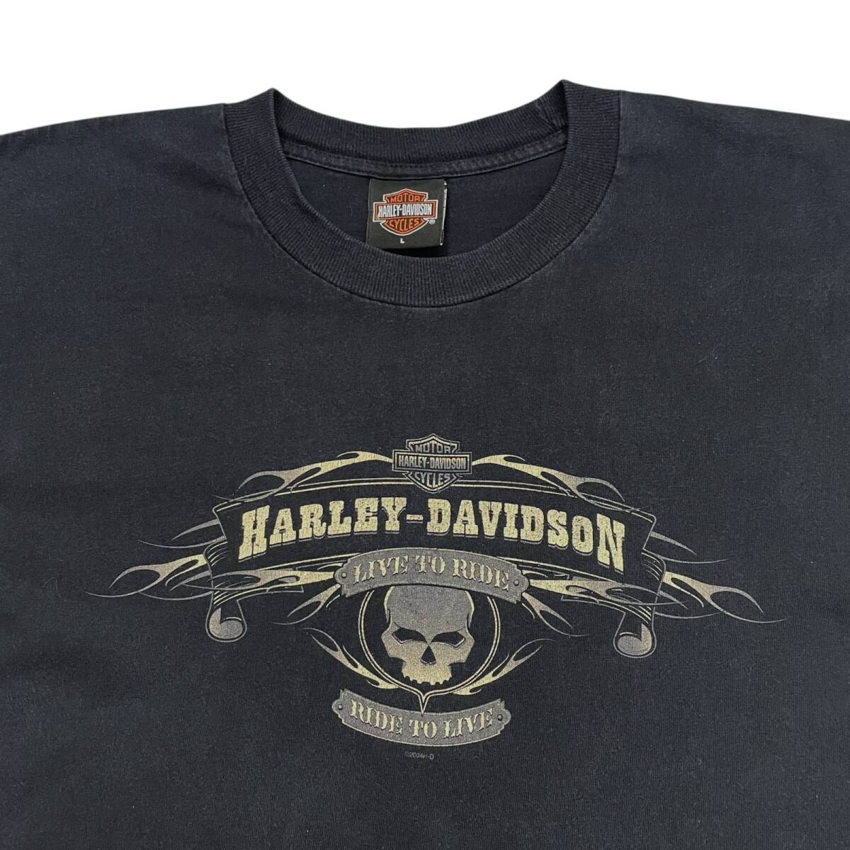 00s ハーレーダビッドソン 2004年 ラスベガス スカル フレイム ロンT 長袖 Tシャツ サイズ L