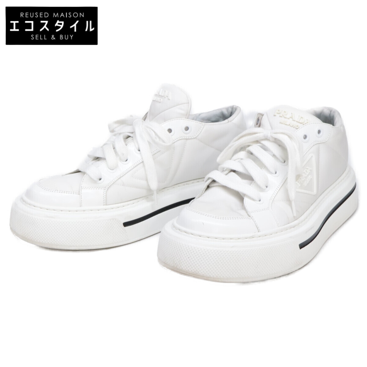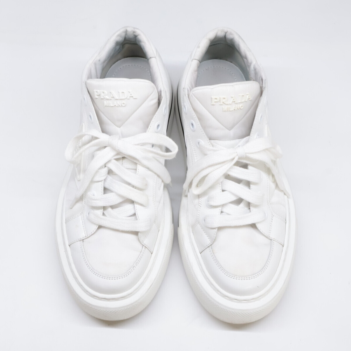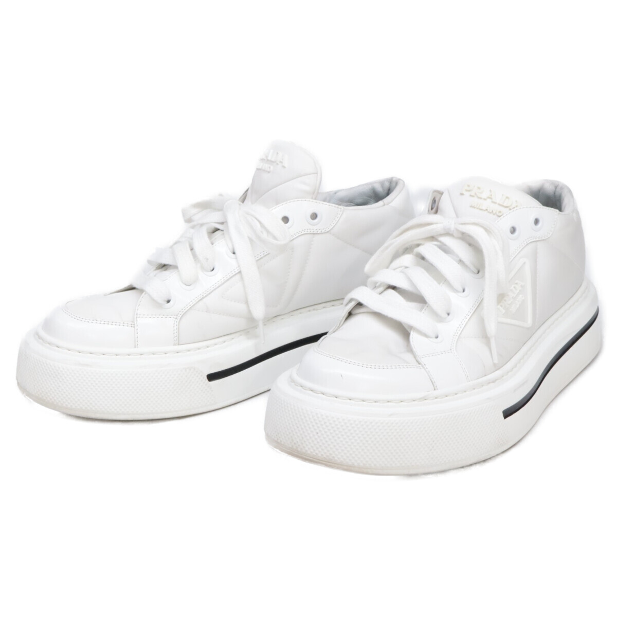PRADA プラダ 2EG376 Re-Nylon ナイロン/レザー プラットフォーム スニーカー 8 1/2 ホワイト メンズ