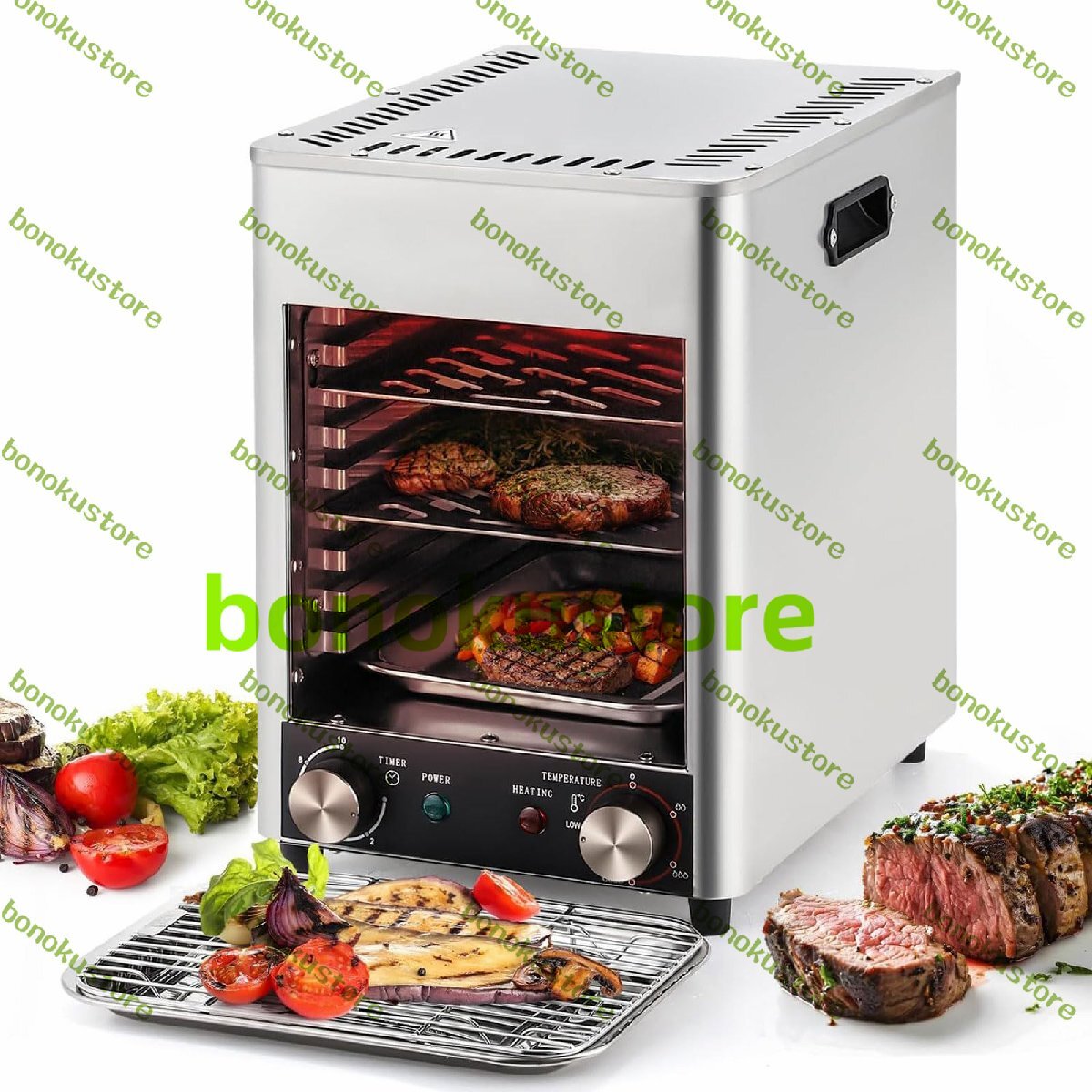 1700W業務用屋内ステーキグリル、8層ポータブル無煙ステーキマシン、100?800℃温度調節可能、10分タイマー、ステーキ、ラムチョップ、グリルチキン、グリル魚、野菜、果物用