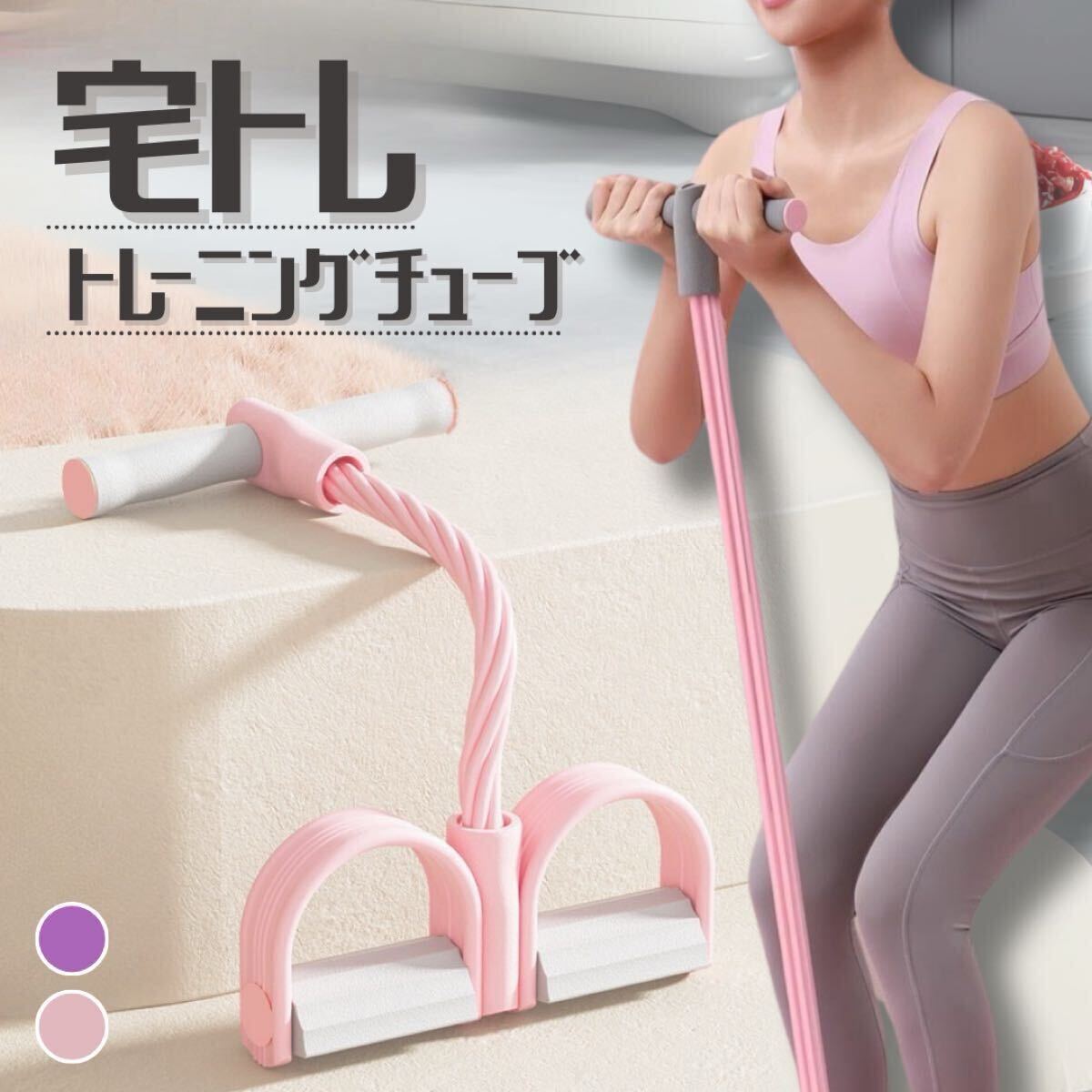 トレーニングチューブ シットアップチューブ 宅トレチューブ エクササイズ ピンク 筋トレ 尻トレ ダイエット 美尻 美脚 健康 くびれ チューブ ジム リフレッシュ 痩せ 腰痛 運動 コンパクト