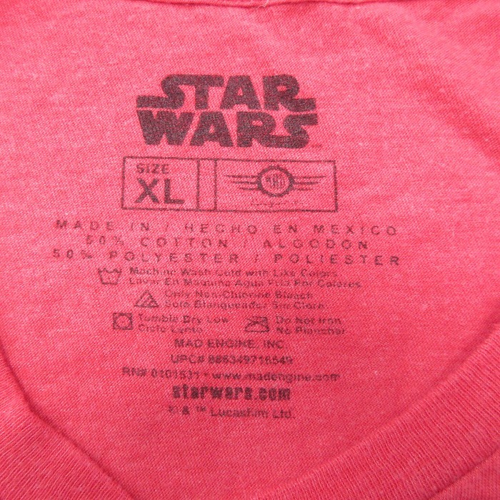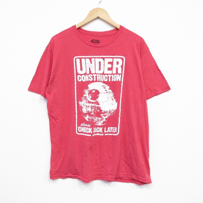 【商品名】 XL★古着 半袖 Tシャツ メンズ スターウォーズ デススター クルーネック 赤 霜降り