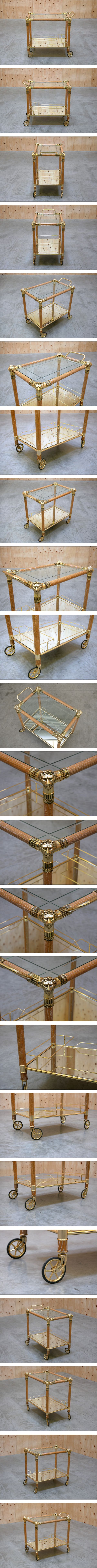 | この度は、ご覧いただきありがとうございます。 yt2036ジ『引取限定』美品 アンティーク調 サービスワゴン/トロリー ガラス天板 獅子型装飾 ライオン/ミラー/鏡/高級/優雅 70829-05 の投稿です。 --------------------------------------------- 【お品物の詳細】 商品名:アンティーク調 サービスワゴン/トロリー ガラス天板 獅子型装飾 製造元:不明 製造国:不明 全体サイズ:幅 49cm 奥行 80cm(73.5) 高さ 73.5cm(71cm) ※カッコ内ハンドル除く ガラス部分:幅 37.5cm 奥行 62.5cm 高さ 67.5cm ※すべて素人採寸/多少の誤差はご容赦ください。 付属品:なし ※商品写真はテント倉庫内で撮影しております。テント幕を透過してくる太陽光の影響を受けており、写真と実物とで色合いの異なる場合がございます。予めご了承ください。 ※製品詳細に関しましては各サイトにてご確認ください。 --------------------------------------------- 【お品物の外観状態】 外観状態ランク:S...数回使用した程度の美品のお品物 ****************************************** ▼注意事項御座います、必ずお読みください▼ ****************************************** こちらのお品物は当方がお譲り頂いたお品物となります。 前所有者の方の入手時期や使用頻度、使用場所や保管方法等は不明なお品物となります。 外観状態と致しまして、一見して傷や汚れのお見受けできない中古美品のお品物かと思われます。 使用感はほぼ感じられず、当方主観では展示品レベルの極めて美品のお品物と判断致しております。 尚、あくまでユーズド品となりますので、ごく僅かな擦れや汚れなどはあるものとお考え下さい。 当方でも簡易的な清掃は致しましたが、細部の清掃やメンテナンス等につきましては落札者様にてお願い致します。 当方家具などの専門ではない為、写真に写し切れていない箇所や見落とし等のある場合がございます。 ご不明な点がございましたら質問にてお問い合わせください。尚、専門的な質問にはお答え致しかねます。 現状のお品物として出品させていただきますので、画像で判断できる方、ご理解ご了承いただける方の入札をお願い致します。 ★状態ランク★ N...新品・未使用・未開封品のお品物 S...数回使用した程度の美品のお品物 A... 目立った傷・汚れが余り感じられない程度の美品のお品物 B...一般的な使用感があり、細かな傷や汚れがあるお品物 C... 傷・汚れが目立つ状態のお品物 J... 故障・破損・破け等がある商品(ジャンク品) ※長期の保管や倉庫内での移動等により、コンディションに多少変化のある場合がございます。大変恐れ入りますが、何卒ご理解賜りますようお願い申し上げます。 ******************************************************************* 【発送方法・送料等】 ※こちらのお品物は、天板がガラス製、また下段の棚板が鏡で出来ている為、アート家財おまかせ便(旧ヤマトらくらく家財便)では荷受けを拒否されております。 当方では発送手続き致しませんので、基本的に引き取り限定でのご対応とさせていただきます。予めご了承ください。 尚、引き取りに来られる方はご本人様でなくても(運送業者さまでも)構いませんが、当方では梱包等行わずそのままの状態で直接引き渡し致します。 『 仙台市内での直接のお渡し 』 当方倉庫(仙台市宮城野区中野 ※仙台港ICより車で1分)での直接のお渡し。 事前に取引ナビにて日時のご予約を頂いた上で、当方指定の住所にてお渡しが可能です。 (※引き渡しの準備は決済後より順次行わせていただきます。当方住所から離れた無人の倉庫にて保管している為、人員派遣の都合上、お品物の準備に日数を頂戴する場合がございます。) ■お渡しが可能な日時■ 曜日 : 毎週火曜日は定休日となりますので、火曜日以外でお渡し可能 お時間: 10時~17時 までのお時間でお渡しのご対応は可能です。 ※引き渡しの日時は取引ナビにて事前にご予約をお願い致します。 ご希望はある程度お伺い出来ますが、恐れ入りますが当方の予定に合う日程でのお渡しとなりますので予めご了承下さい。 ご希望の日時は第1~第3希望程度お知らせ頂けますと調整が行えるかと思いますので、ご検討の程お願い致します。 【ご注意】 ※製品サイズをご確認の上、貨物車などの積載可能なお車でお越しください。荷台に余裕のない場合、トラブル防止のため当方では積み込みの補助を致しかねます。 (「●●に乗ってますが、積み込み可能ですか?」等のご質問にはお答え致しかねます。) ※お車までの積み込みはある程度お手伝いは可能ですが、当方での手伝いは1名のみの手伝いの場合が多いので、人手が必要な場合はご注意ください。 -------------------------------------------------------------------- ◎落札後のお取り置きに関して かんたん決済後、5日以内のお引取りをお願い致しております。 5日以上のお取り置きの場合は必ずご相談下さい。 尚、2週間以上のお取り置きは出来かねますのでご了承下さい。 ------------------------------------------------------------- ※大変恐縮ではございますが、連絡およ