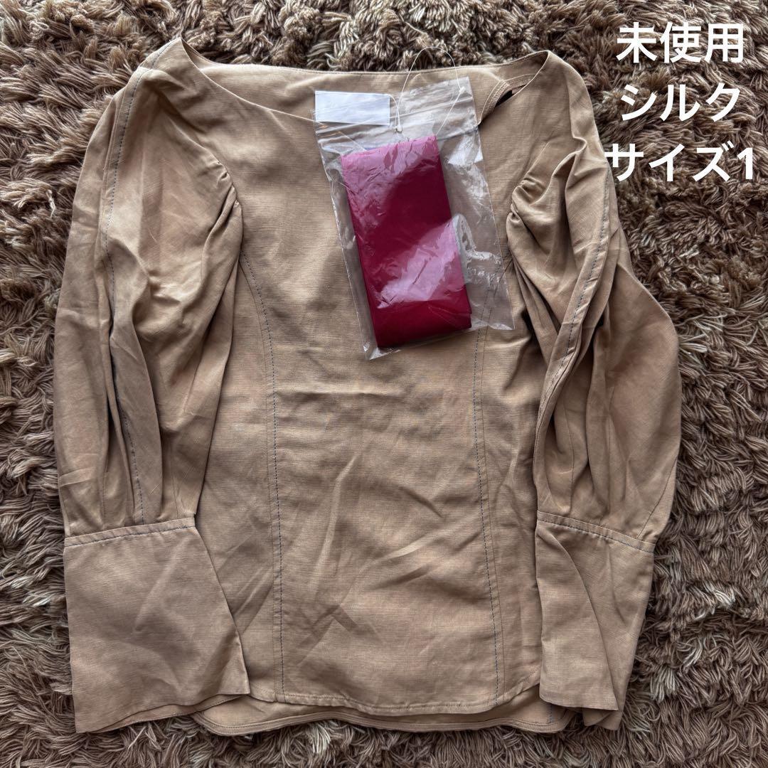 【未使用】マメクロゴウチ シルク ボリュームスリーブ ブラウス サイズ1 ベージュ Y2K