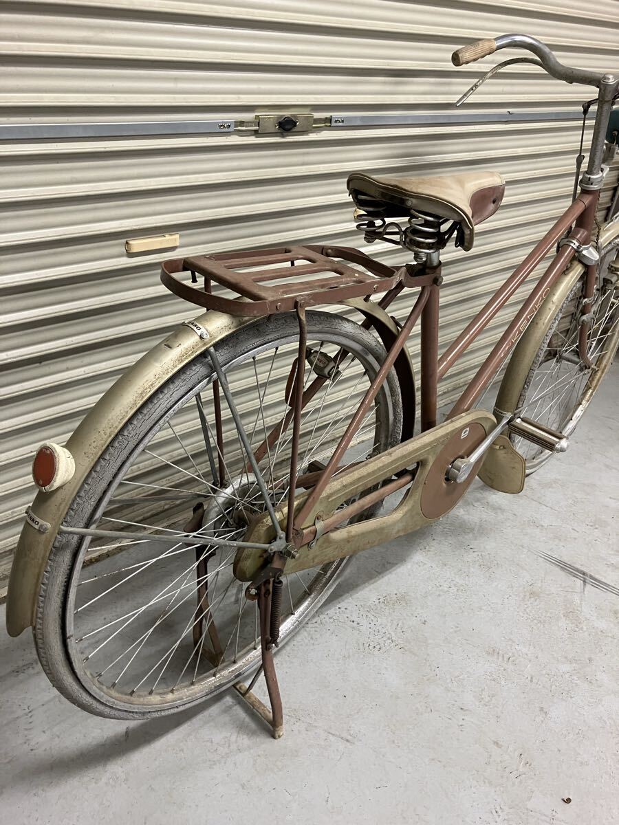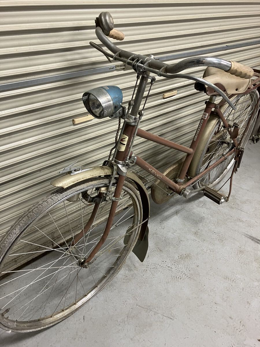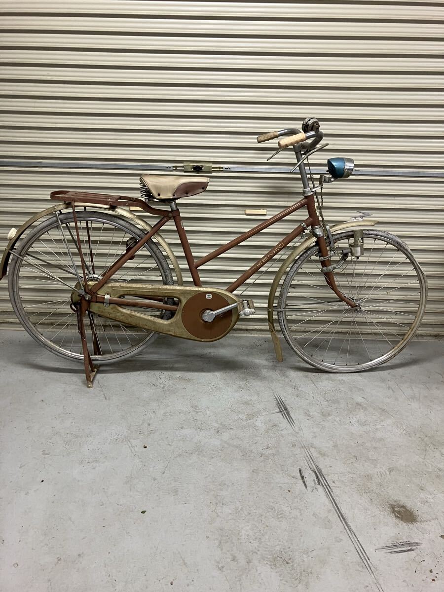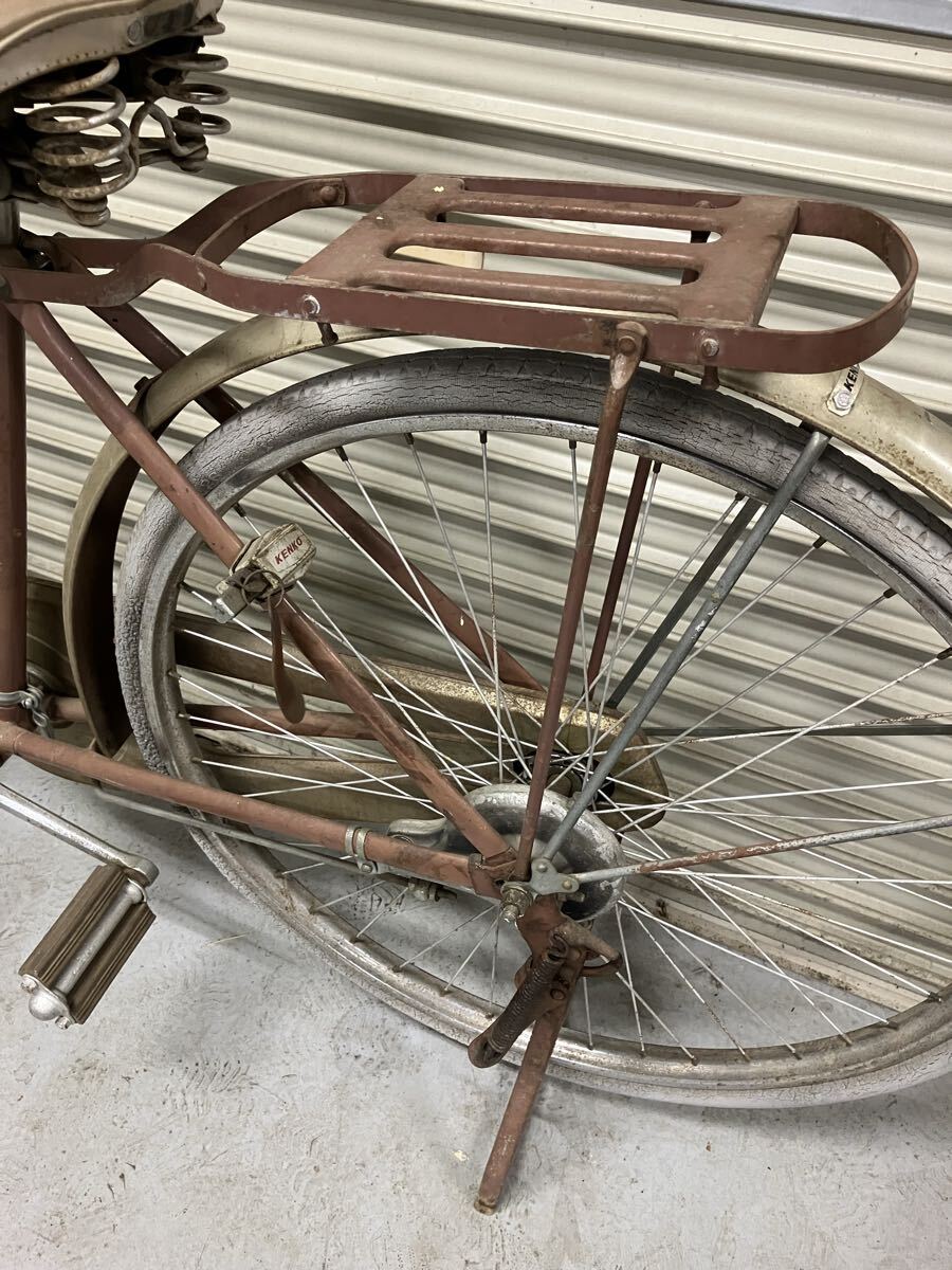 当時のままの状態で保存してきました。クランク、ペダル、ブレーキ、車輪 可動します。タイヤも潰れていますが当時の物だと思われます。このまま乗るのは無理ですので、整備してあげてください。発送ですが落札者様で手配して頂ければ全国発送可能です。山梨から近くでしたら私が実費で届けます。わからないことがありましたら質問して頂き納得の上ご入札お願いします。
