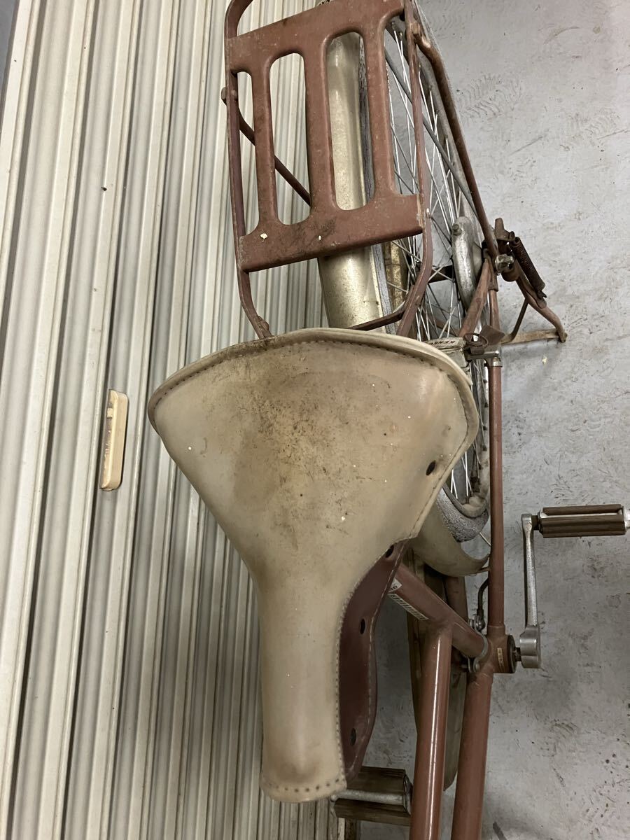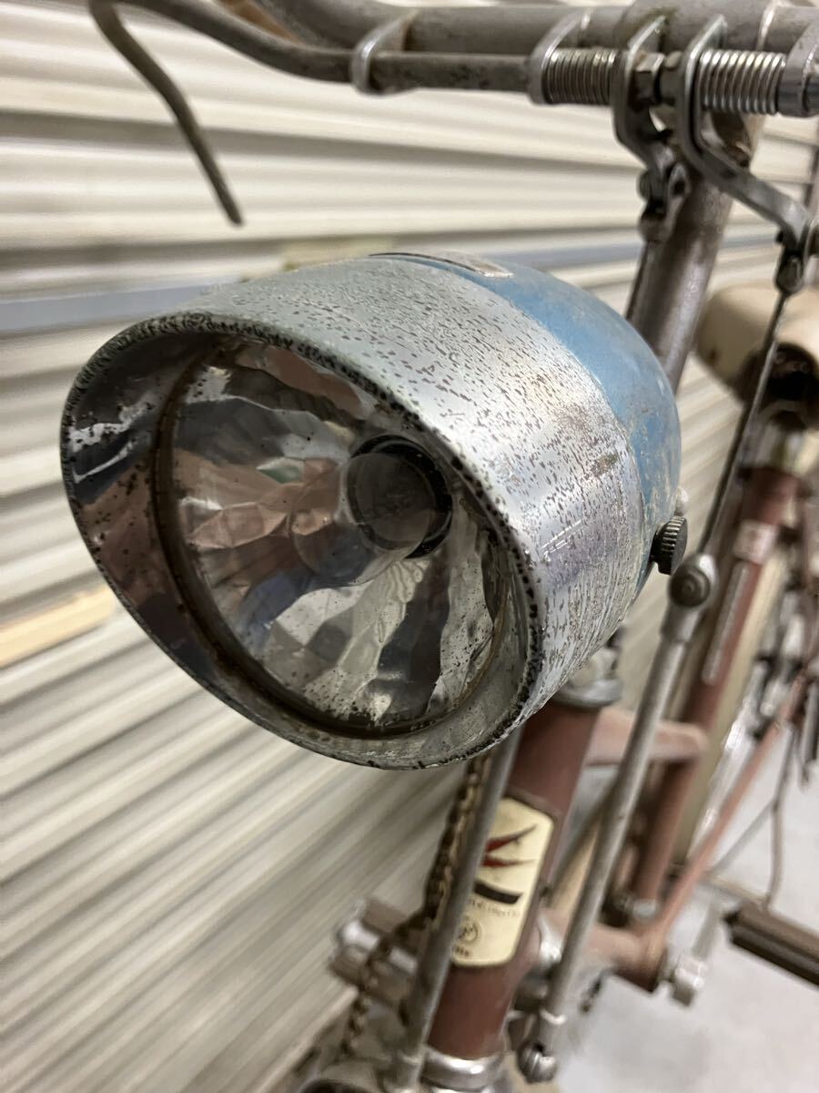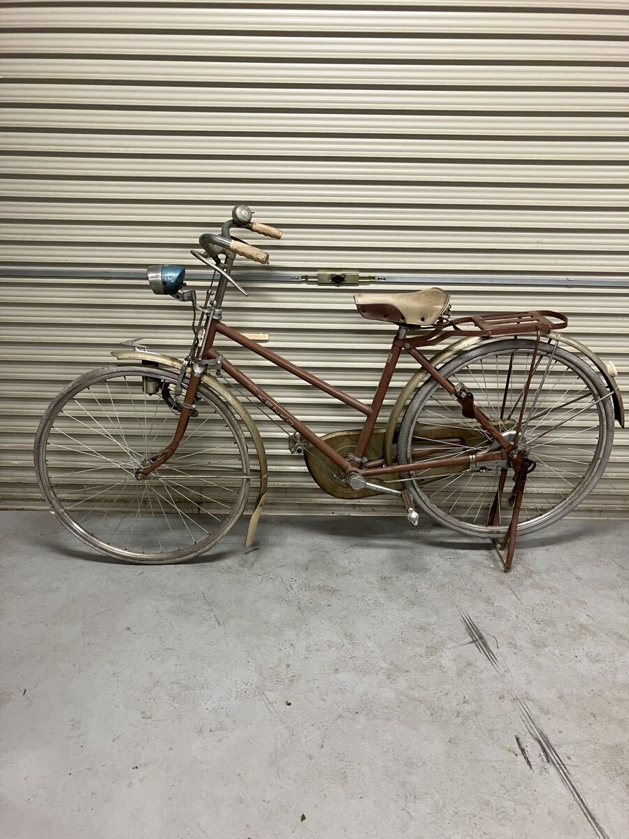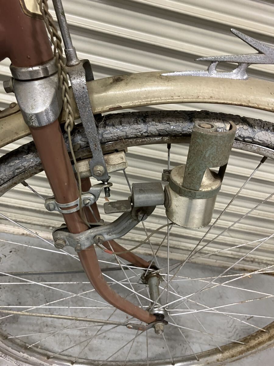 当時のままの状態で保存してきました。クランク、ペダル、ブレーキ、車輪 可動します。タイヤも潰れていますが当時の物だと思われます。このまま乗るのは無理ですので、整備してあげてください。発送ですが落札者様で手配して頂ければ全国発送可能です。山梨から近くでしたら私が実費で届けます。わからないことがありましたら質問して頂き納得の上ご入札お願いします。