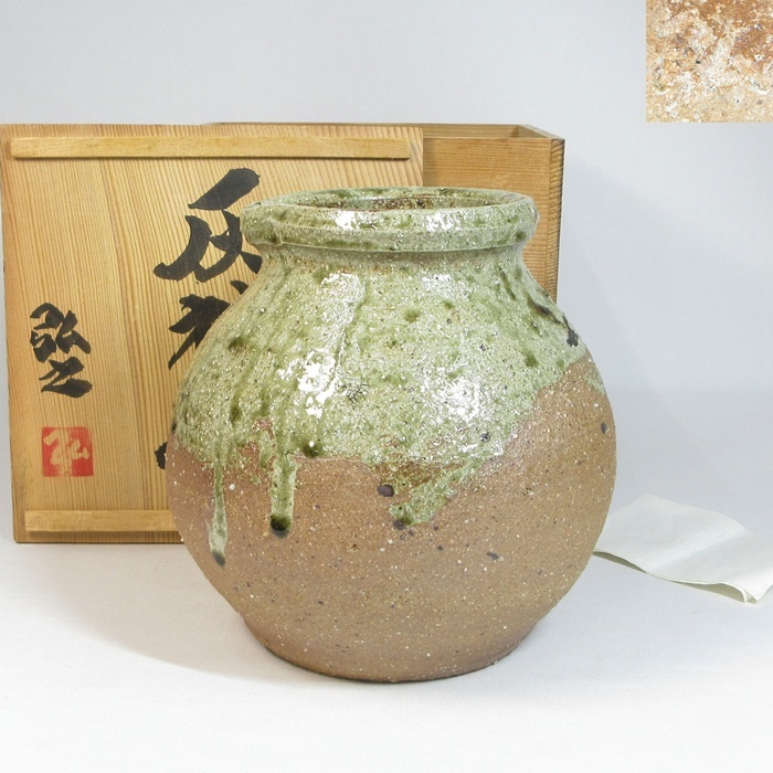 【B0566】良い窯変! 丹波立杭焼 【 市野弘之 】 灰被壷 灰釉 壺 共箱 栞付き 即決 送料無料