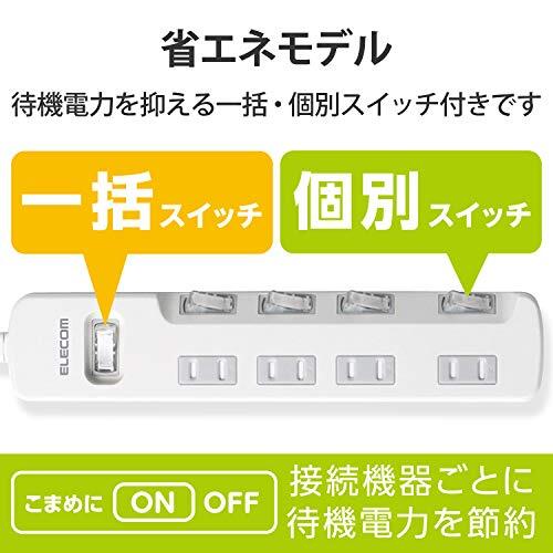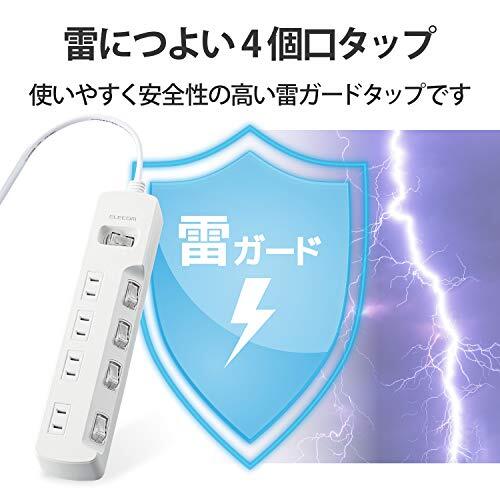 エレコム 電源タップ 雷ガード 一括&個別スイッチ スイングプラグ ほこりシャッター付 4個口 5m ホワイト T-K8A-2450WH