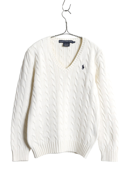 商品名 | ラルフローレン コットン ケーブル ニット セーター レディース М ポロ スポーツ 長袖ニット Vネック ワンポイント シンプル きれいめ 白 |