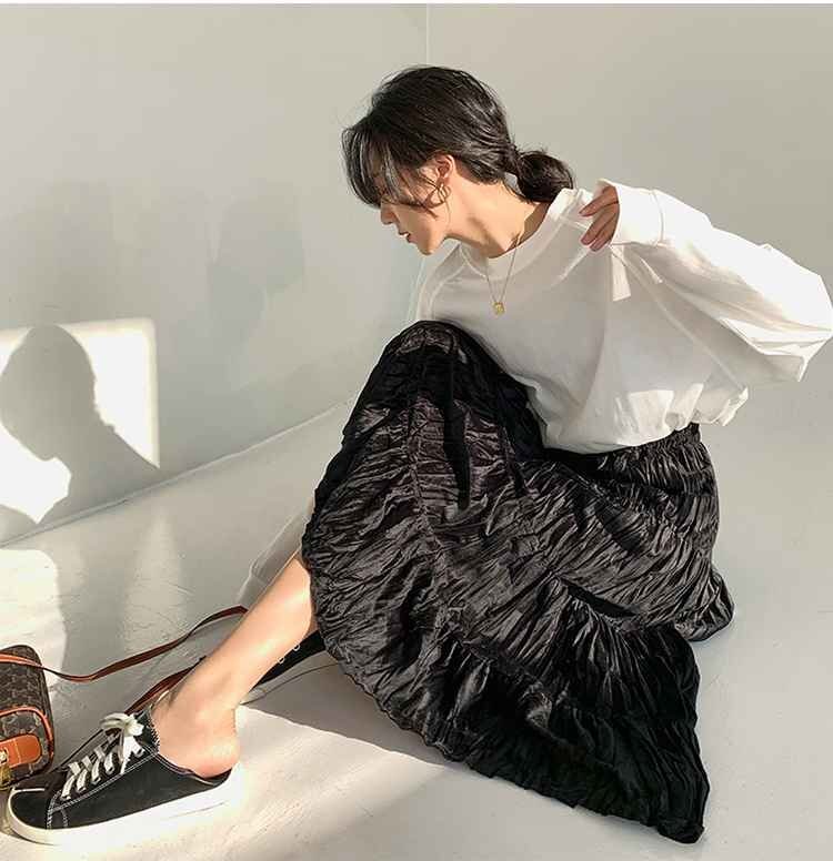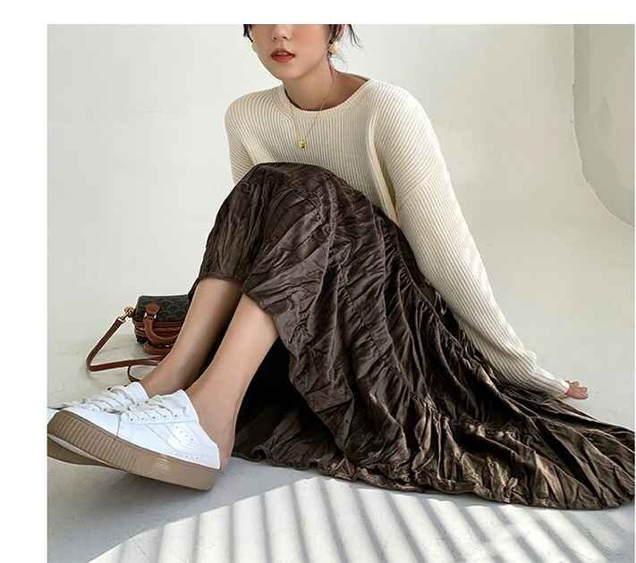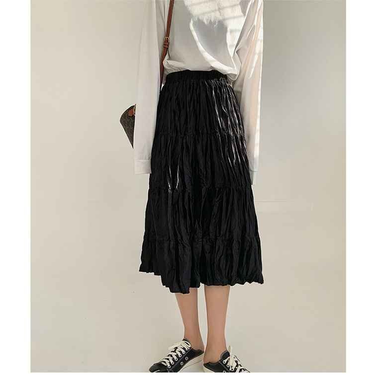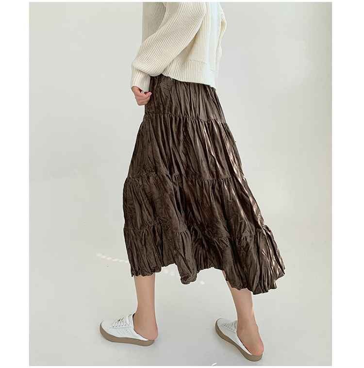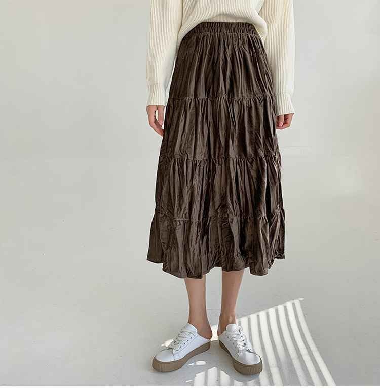 程よいロング丈は女性らしい雰囲気が出て、いつものトップスに合わせるだけでスタイリッシュに。