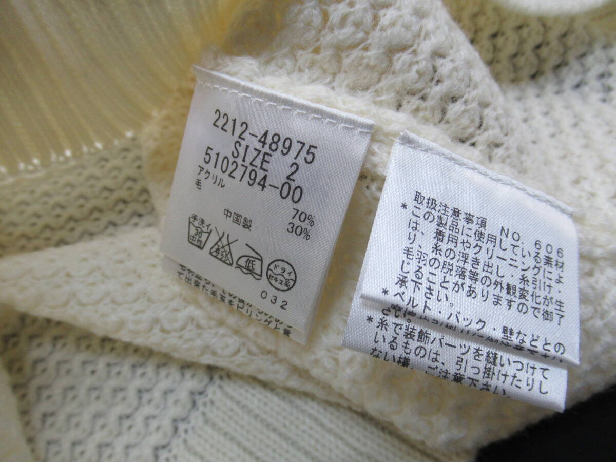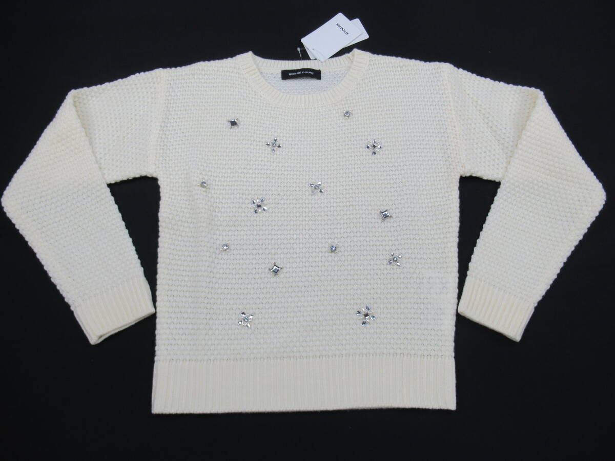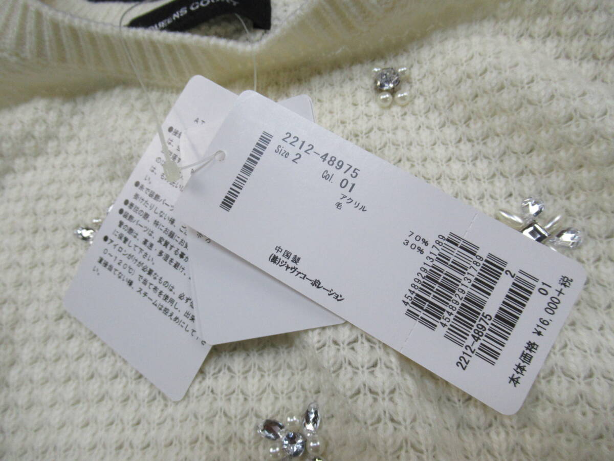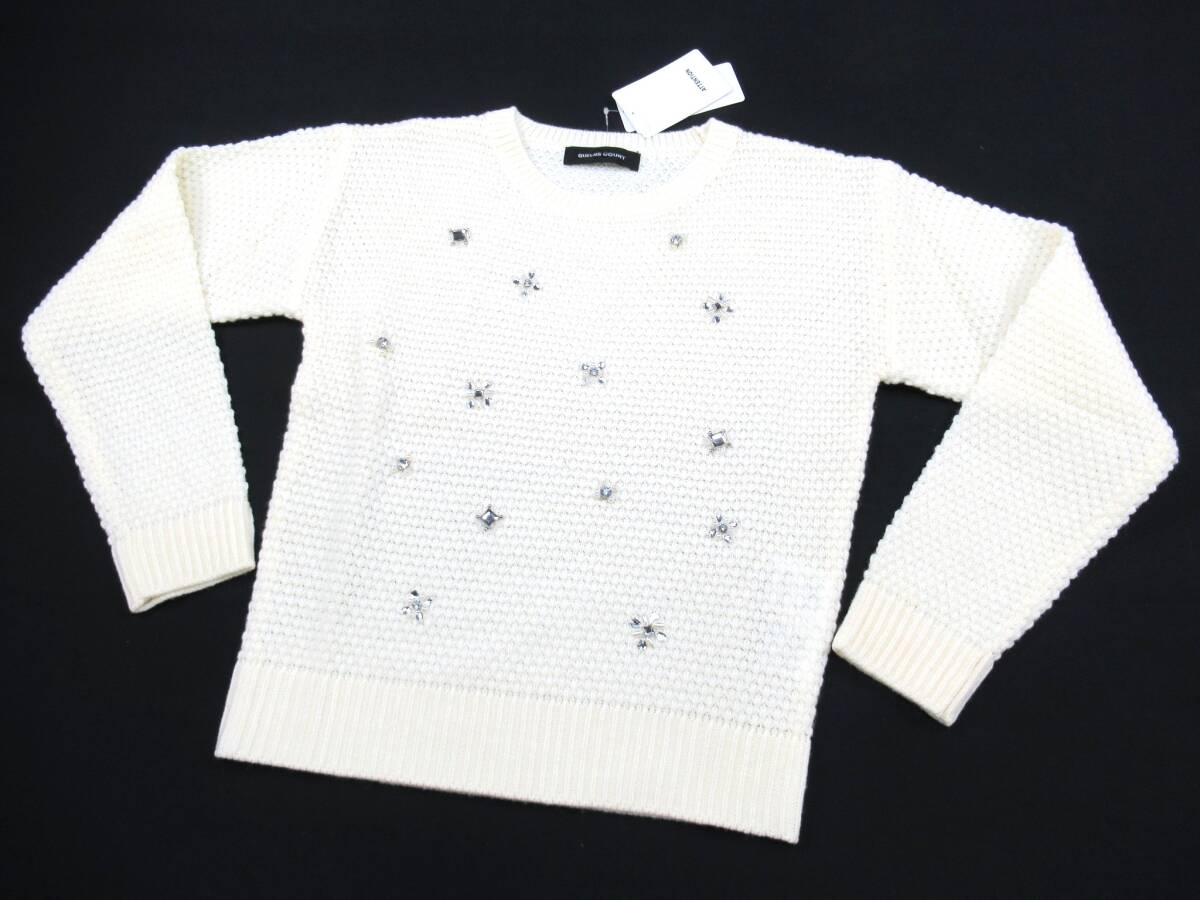 【送900円】1011 未着用品 QUEENS COURT クイーンズコート Uネックセーター ロングスリーブ ビジュー アクリル×毛 ホワイト 2