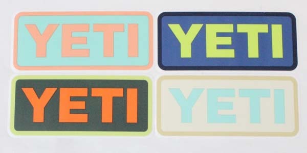 プレミアムクーラーボックスとそのアクセサリーでお馴染みの「イエティ/YETI」社の貴重なステッカー4色セットです。