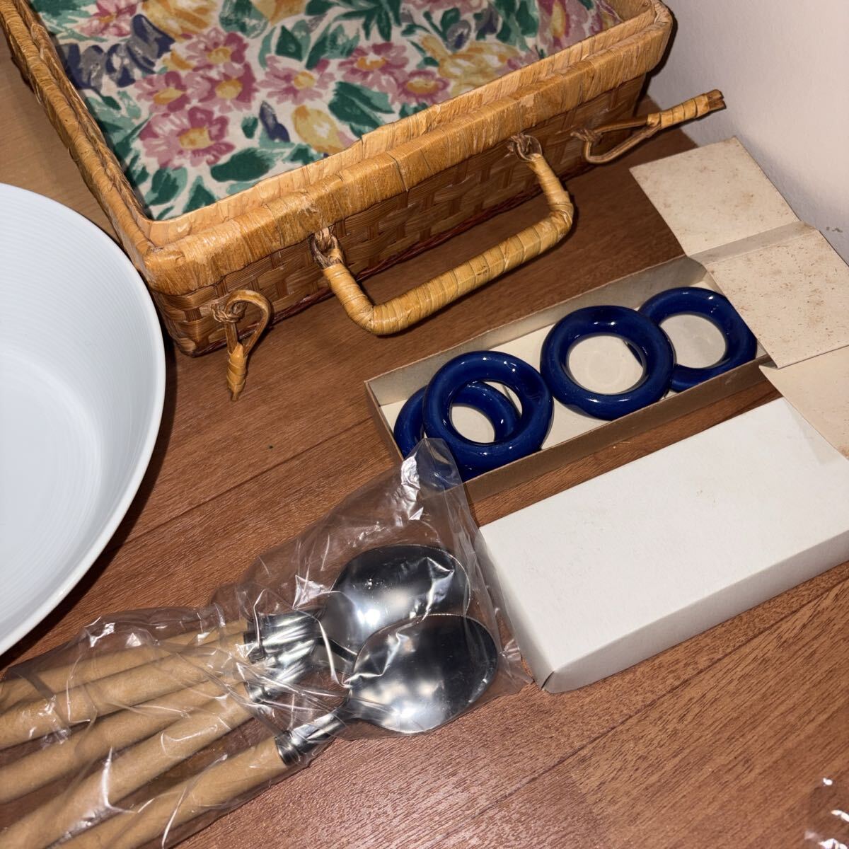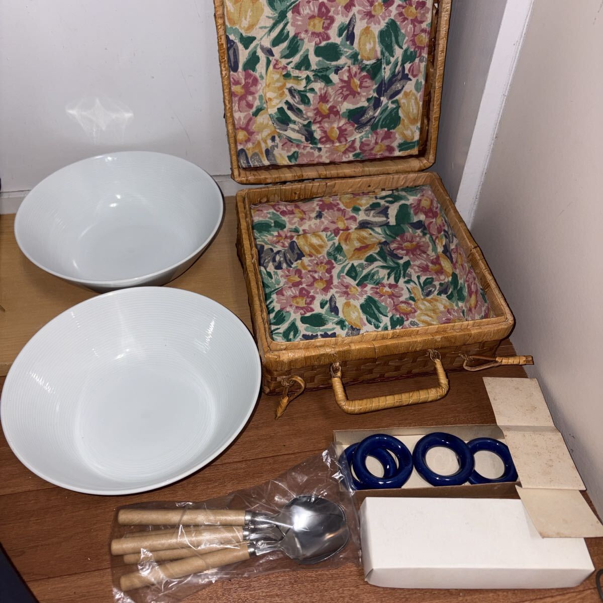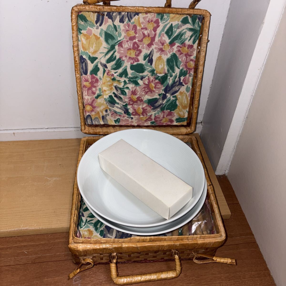 GY0905 ラタンバスケット 深皿 スプーン カトラリーレスト トランク型 花柄