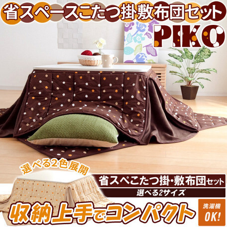 即決可@新品こたつ布団 省スペース 掛敷セット 『PIKO』 カジュアル ドット柄 水玉 約180×180cm/ブラウン | ||||||||||||