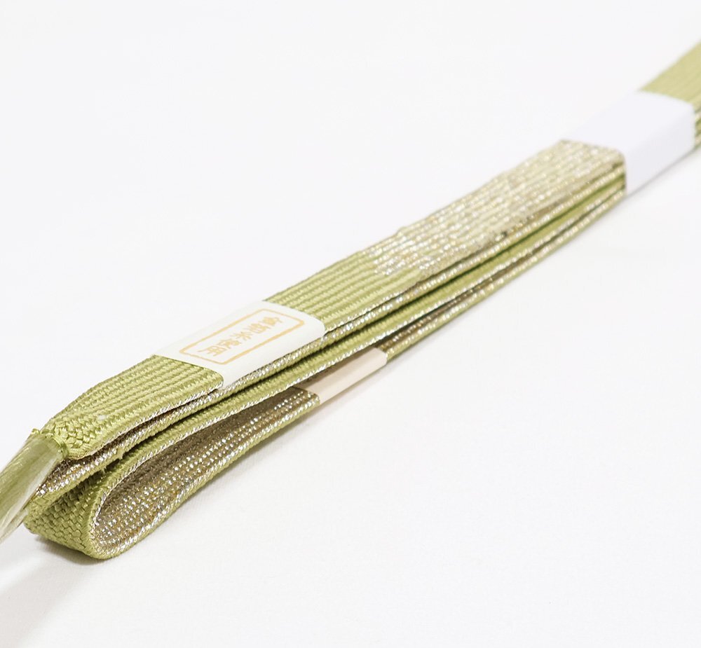 訪問着用 帯締め 三分金 帯締め 組紐 平 若草色 暈しに金の編み 新品 |