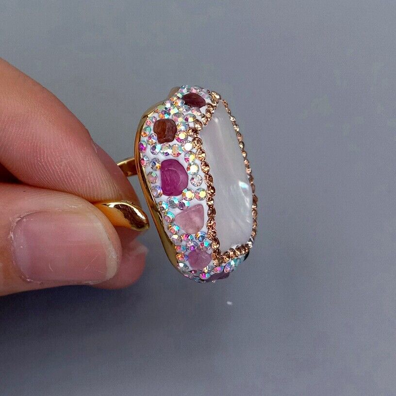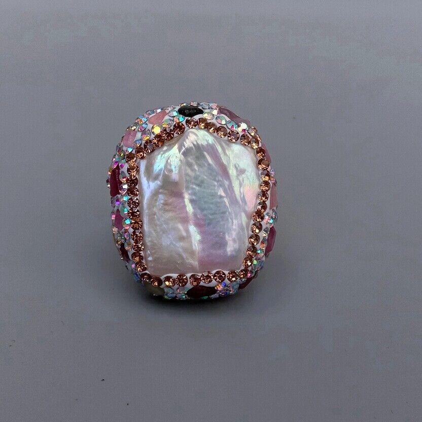 <新品>大粒 天然 ホワイト 淡水 パール 真珠 トルマリン 指輪 リング 調節可能 アジャスタブル 結婚式 プレゼント パーティー ギフト