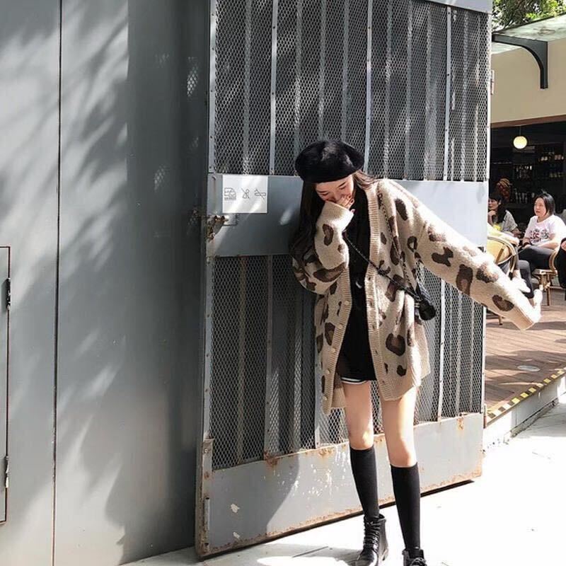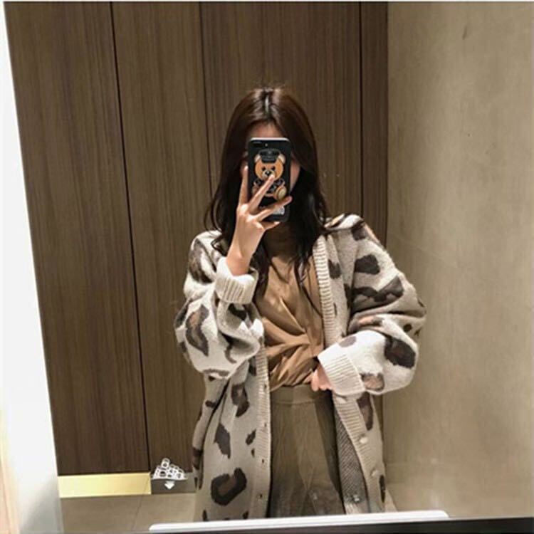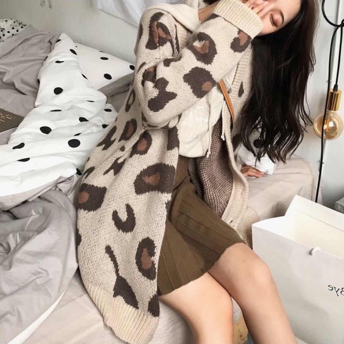 『 カーディガン セーター 豹柄 ニット アウター 長袖 ビッグシルエット 』