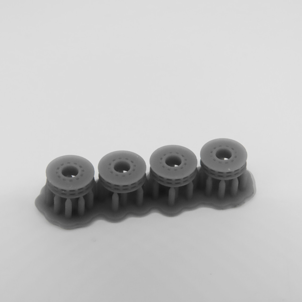 | ・サポート部分をニッパー等で切り離します。 ・サポートの跡はデザインナイフやヤスリで整えて下さい。 ・塗装はそのままでも出来ますが、サーフェイサーを吹いてからの方がきれいに仕上がります。 ・車輪を外して、車軸に押し込んで下さい。ボルトの表現がある方が内側になります。 ・きつい場合には差込む側の穴をほん少しデザインナイフ等で調整して下さい。 ・ゆるい場合にはゴム系の接着剤を少量ご使用ください。 |
