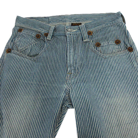 【仕様】502 ジーンズ デニム ストレート ユーズド加工 ヒッコリー ストライプ 前後にポケットあり ジップフライ