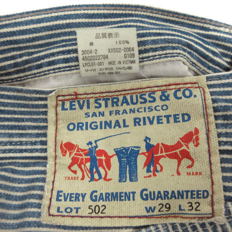 リーバイス Levi's 502 ジーンズ デニム ストレート ユーズド加工 ヒッコリー ストライプ ブルー 青 ホワイト 白 29 メンズ