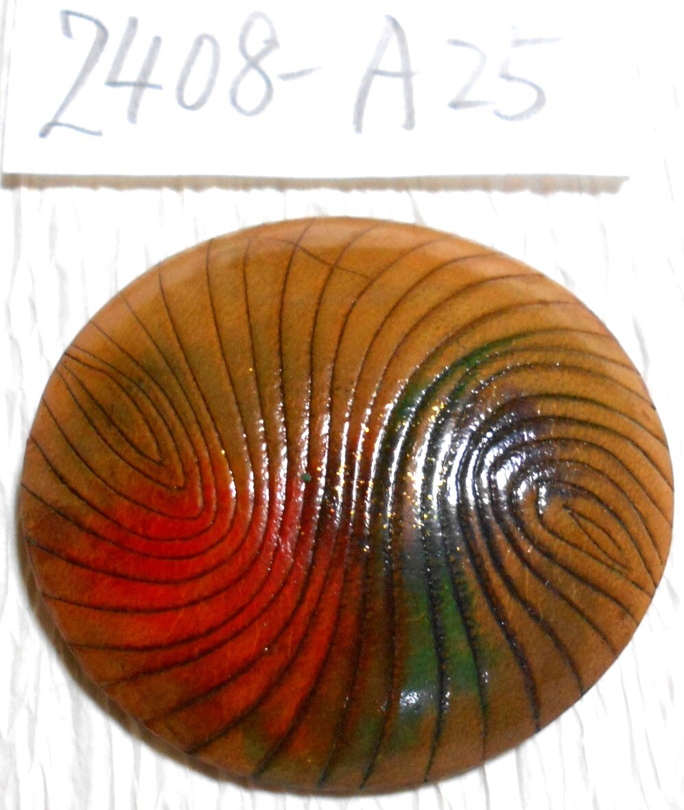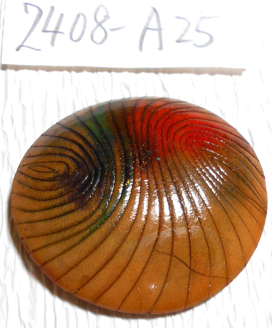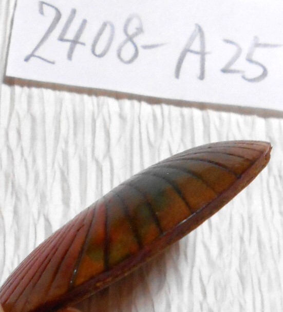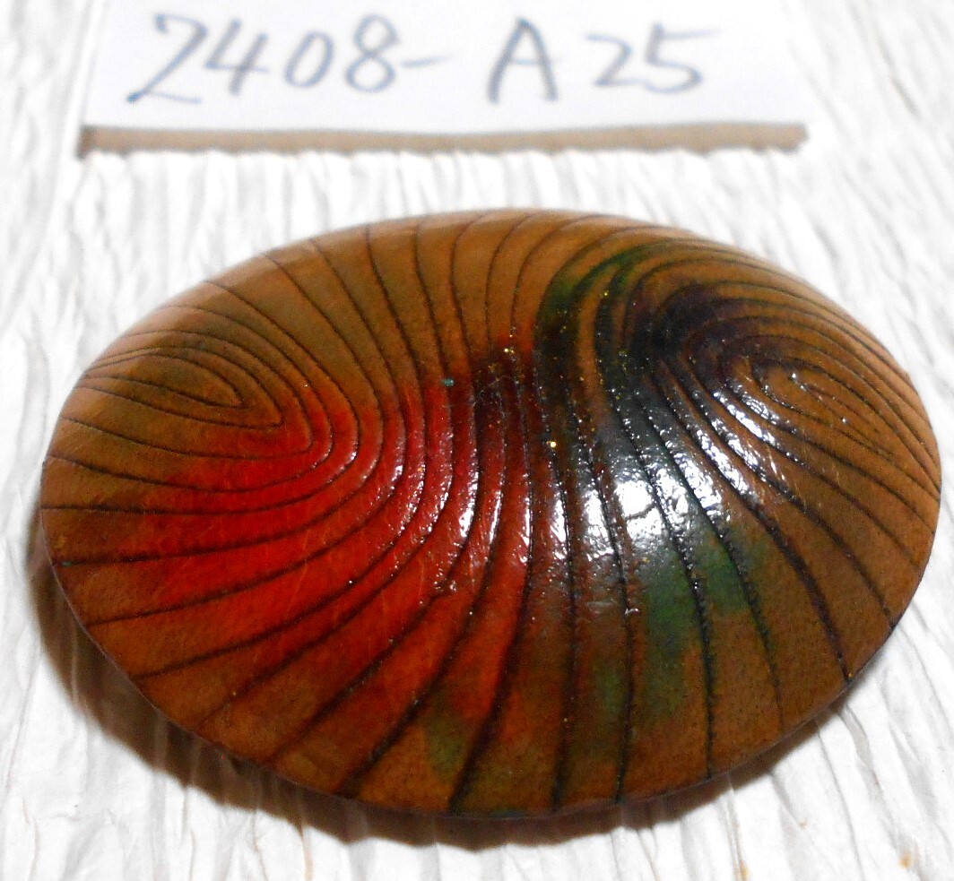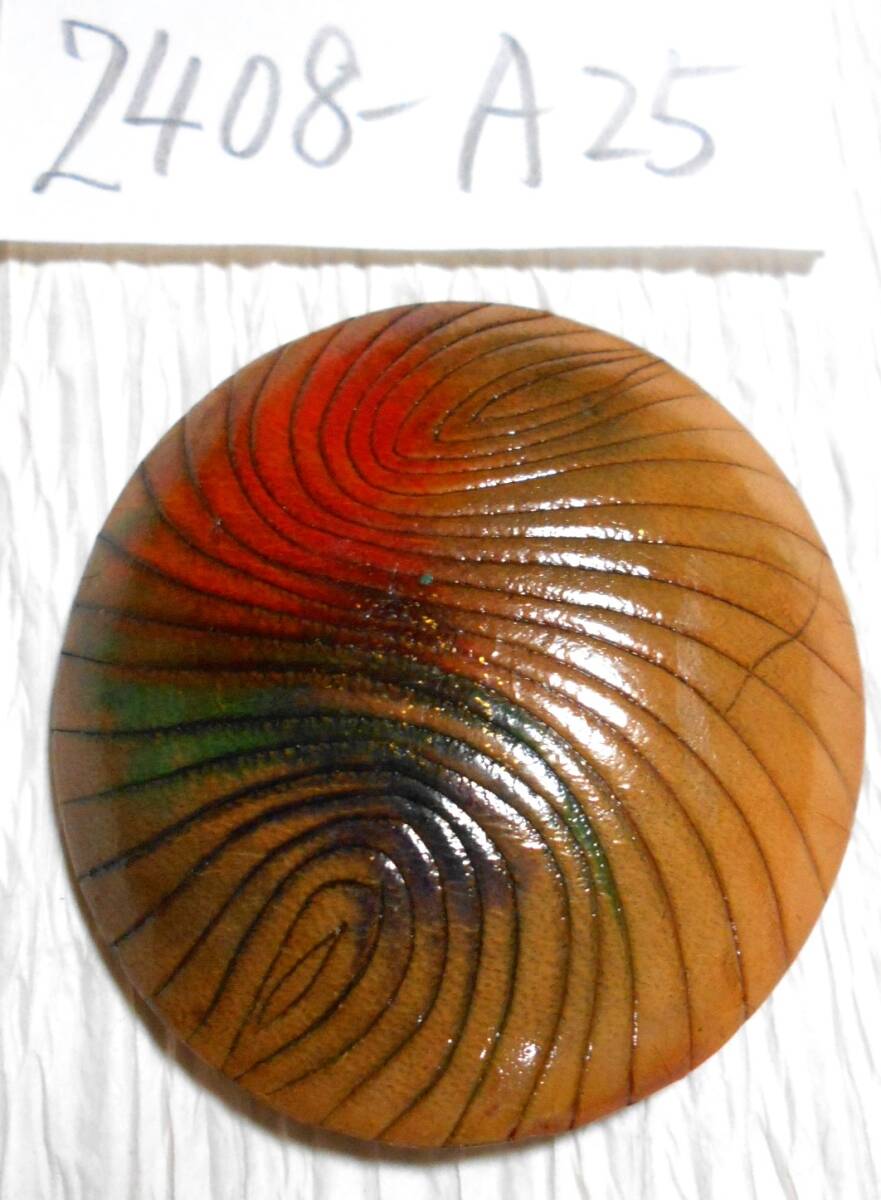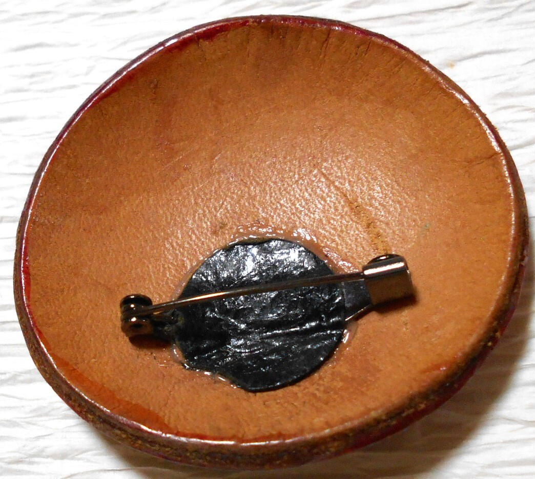 レザークラフト 流水に赤と緑で色刺しされたブローチです。