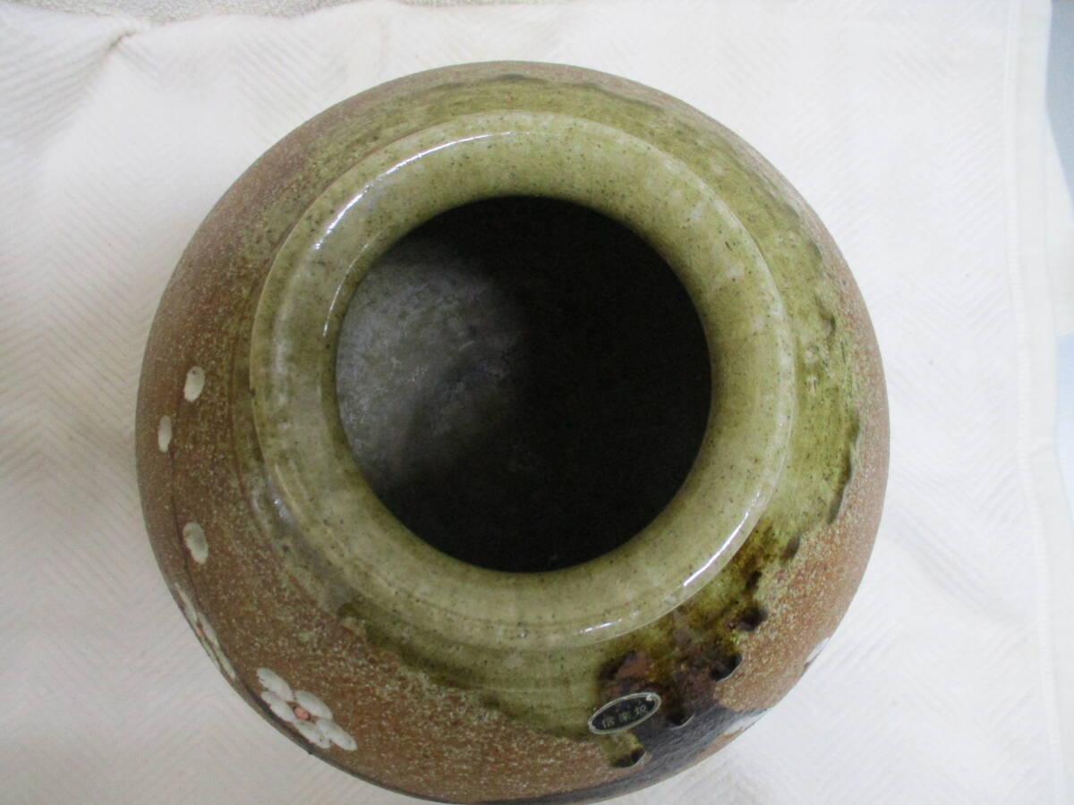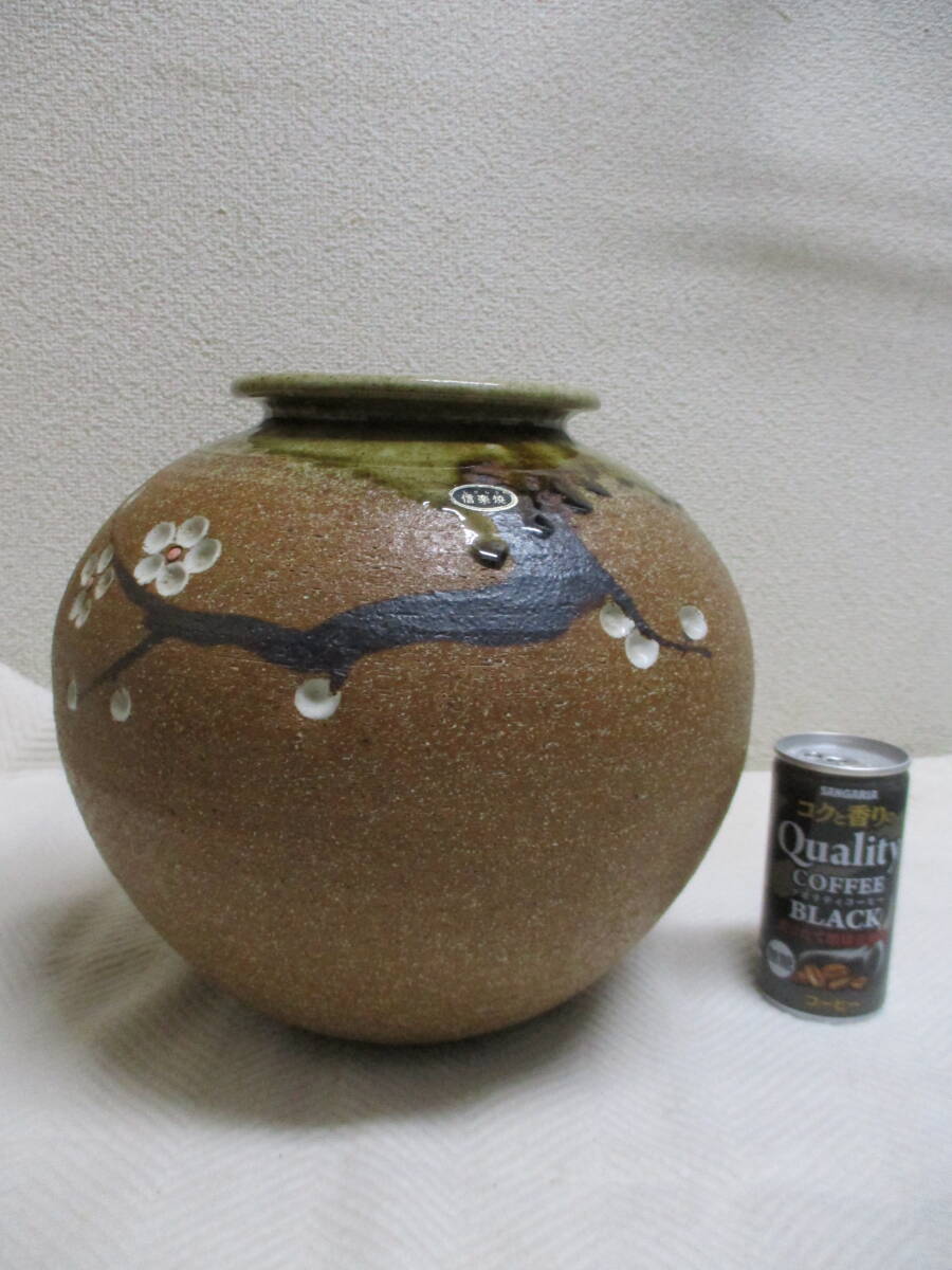 信楽焼 花瓶「梅図」 在銘 検  アンティーク、コレクション 工芸品 陶芸 日本の陶磁 信楽 花器、壷