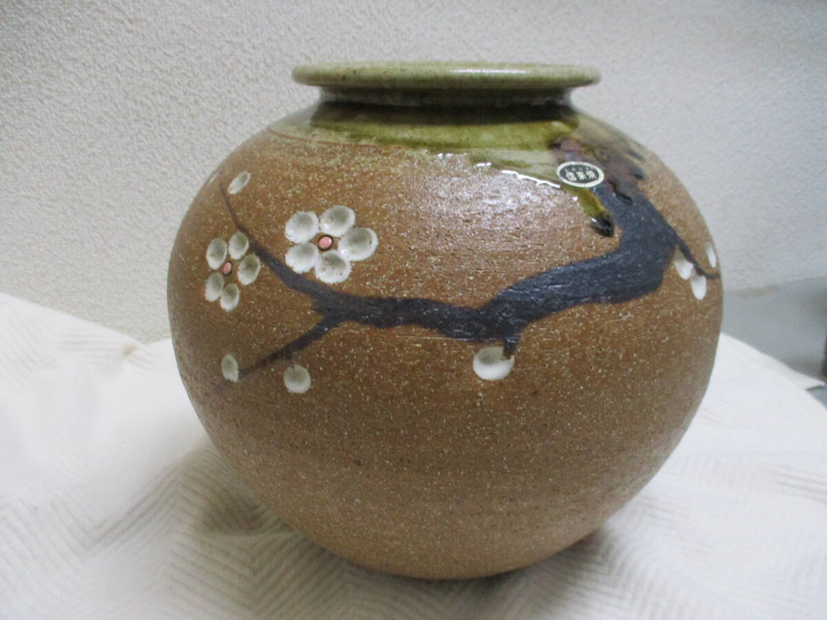 信楽焼 花瓶「梅図」 在銘