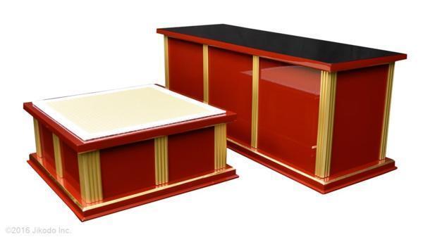 【寺院仏具】朱塗り 現代式登高座2点セット 向机幅120センチ 国内自社工場製作(受注生産品)(商品番号10017s)