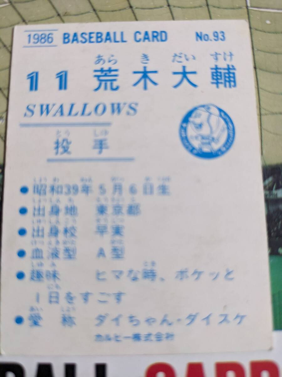 ヤクルト 1986年 カルビー プロ野球カード 荒木大輔 No.93