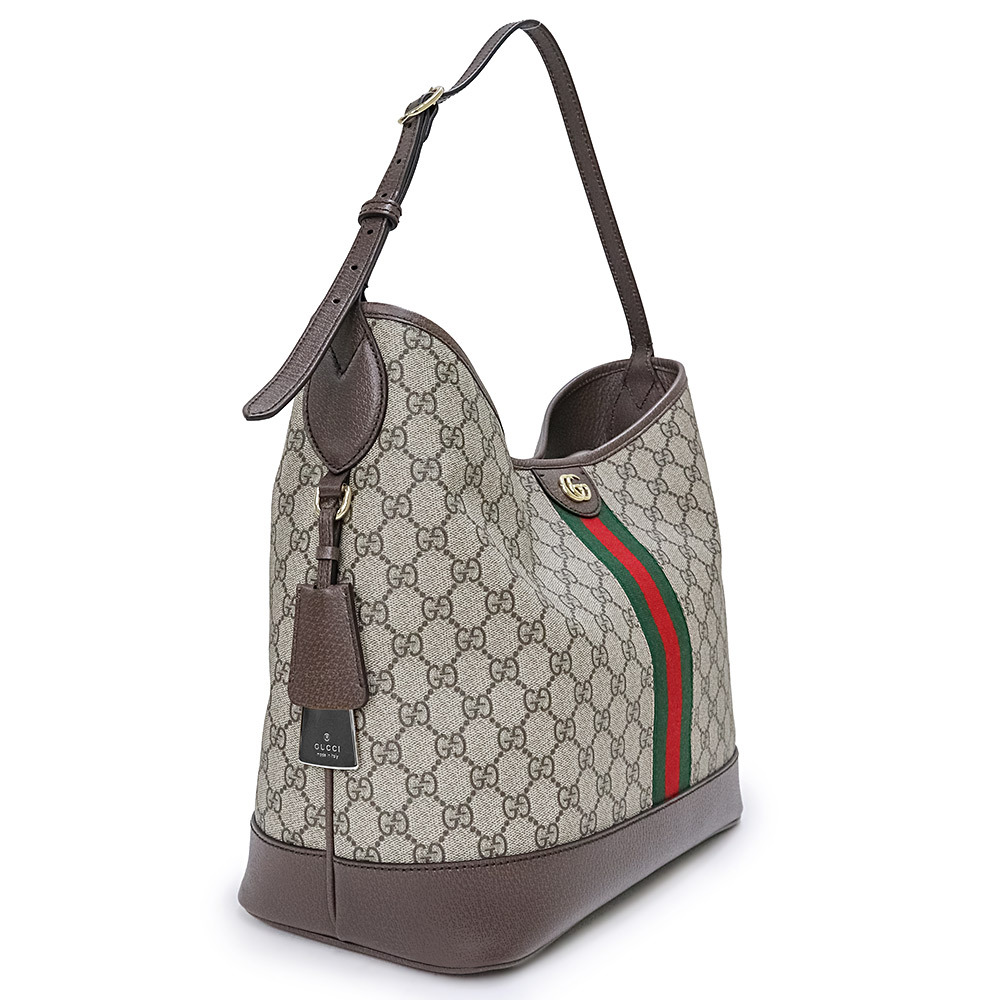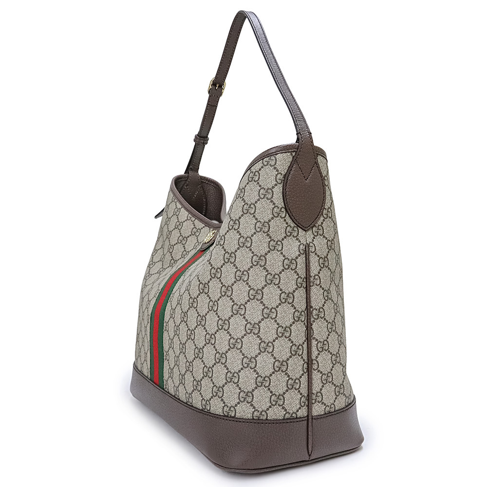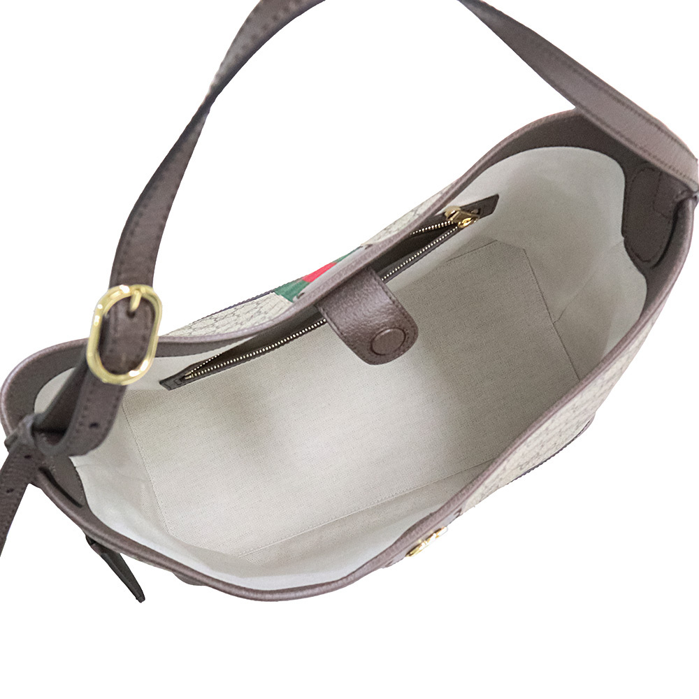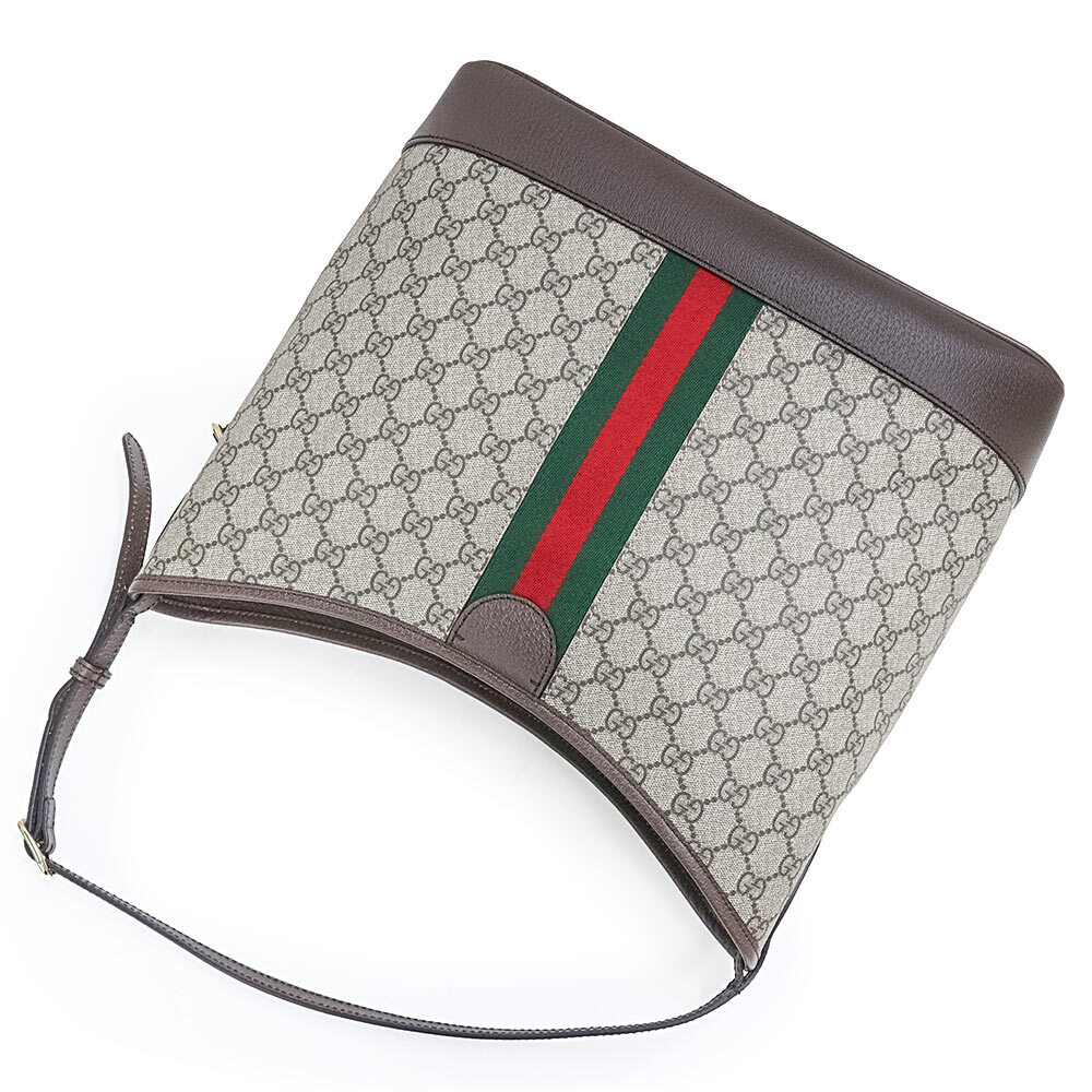 〔オフィディア〕ラインのミディアムサイズのバッグは、オープンバケットのデザインとショルダーバッグのスタイルを組み合わせ、新たに意表を突くアレンジが加えられています。ベージュ&エボニーという象徴的なカラーコンビネーションのGGスプリーム キャンバスで仕立てられています。