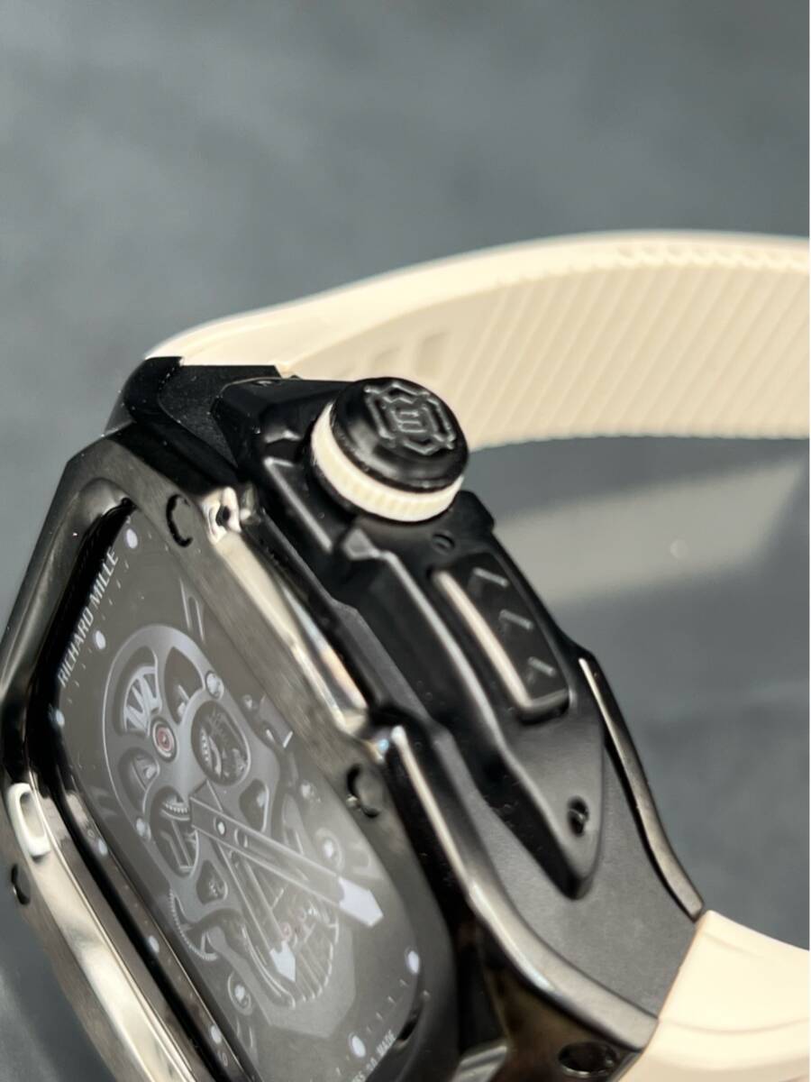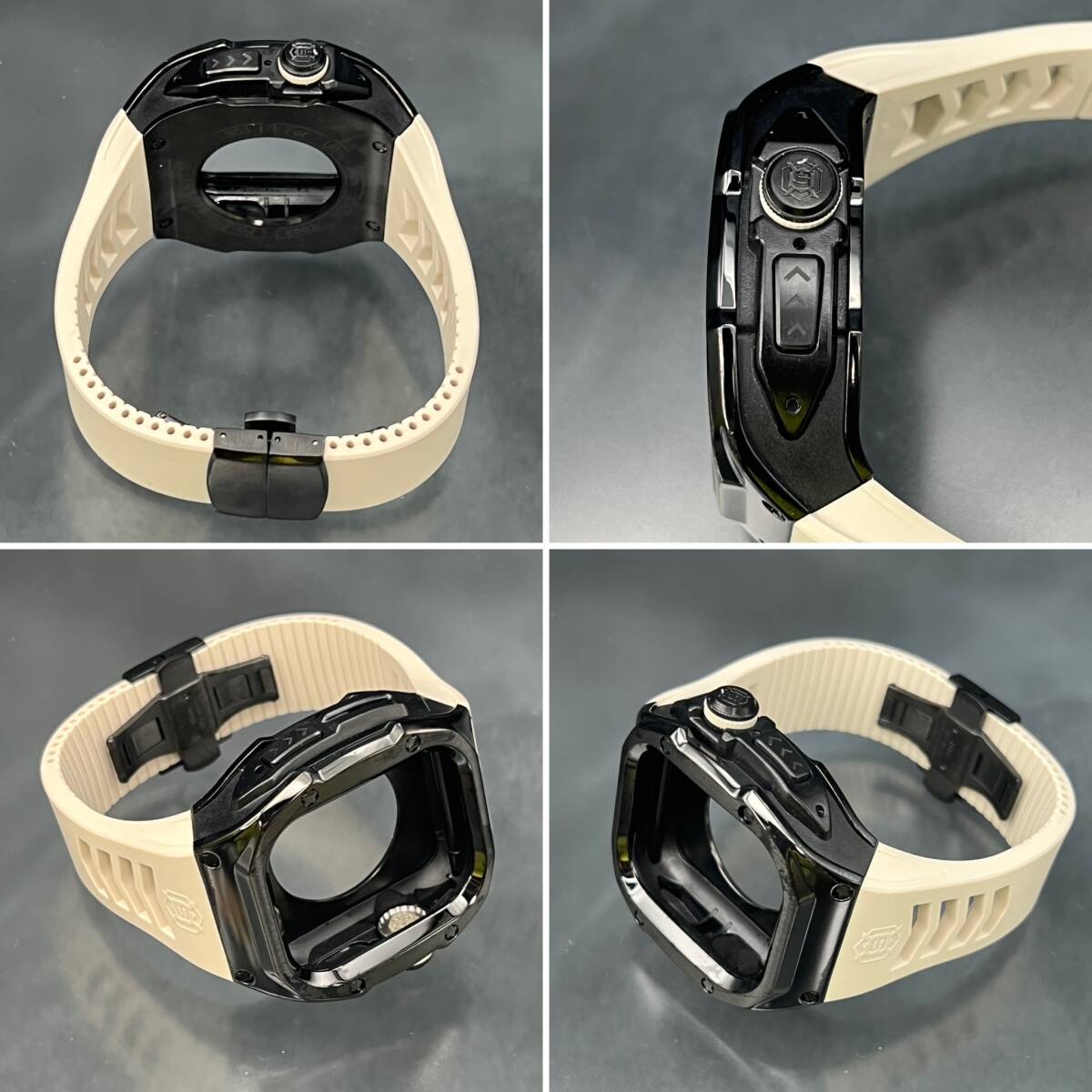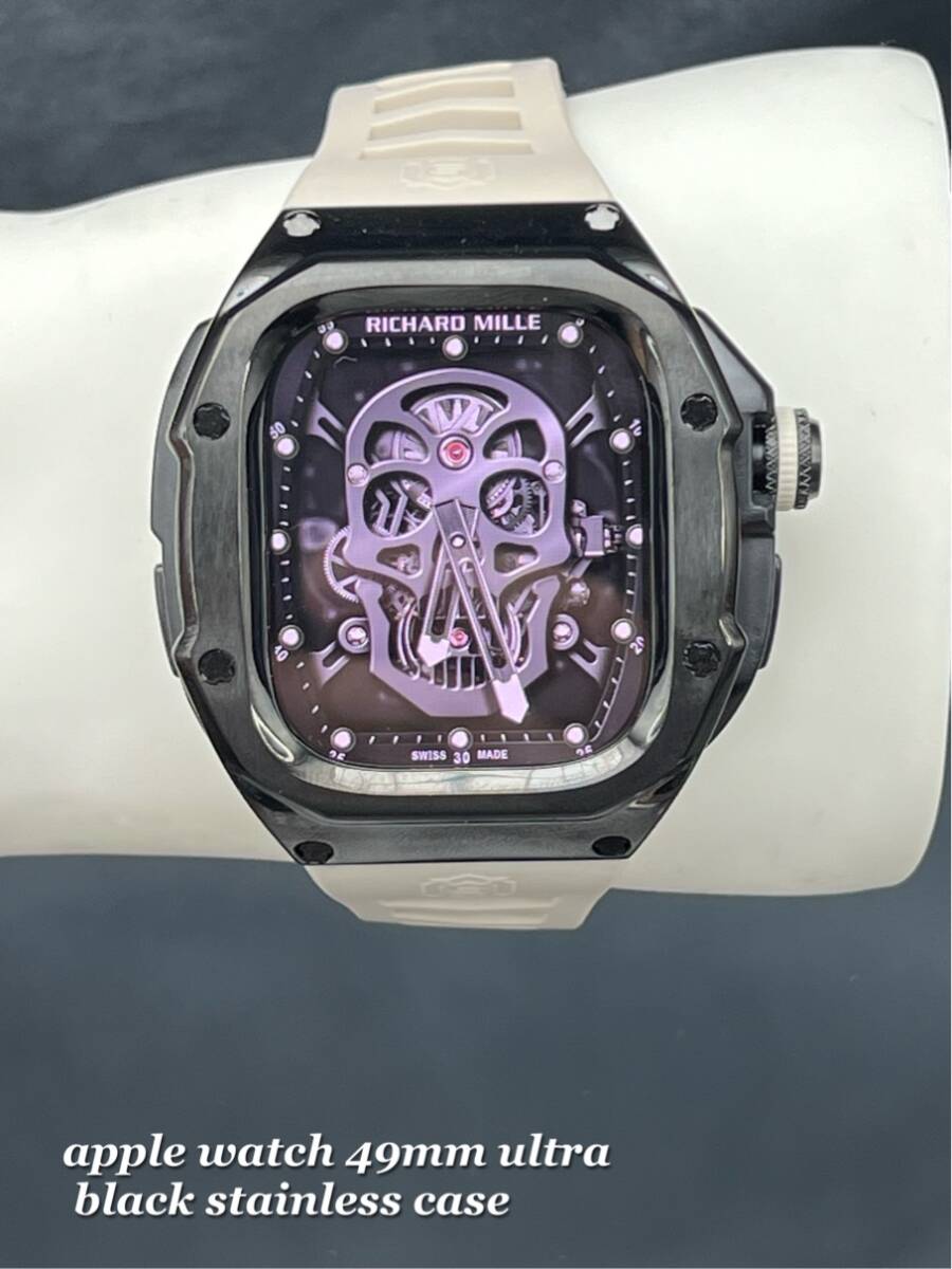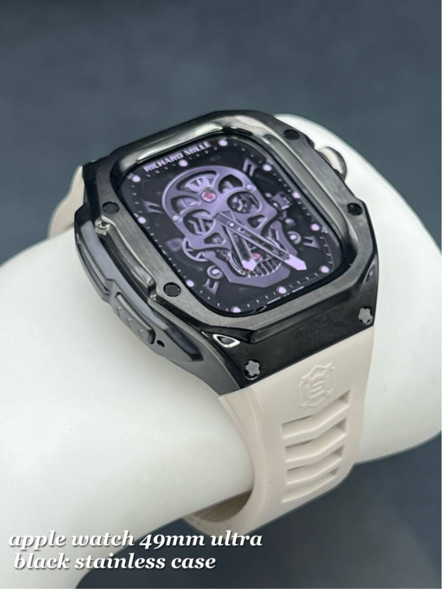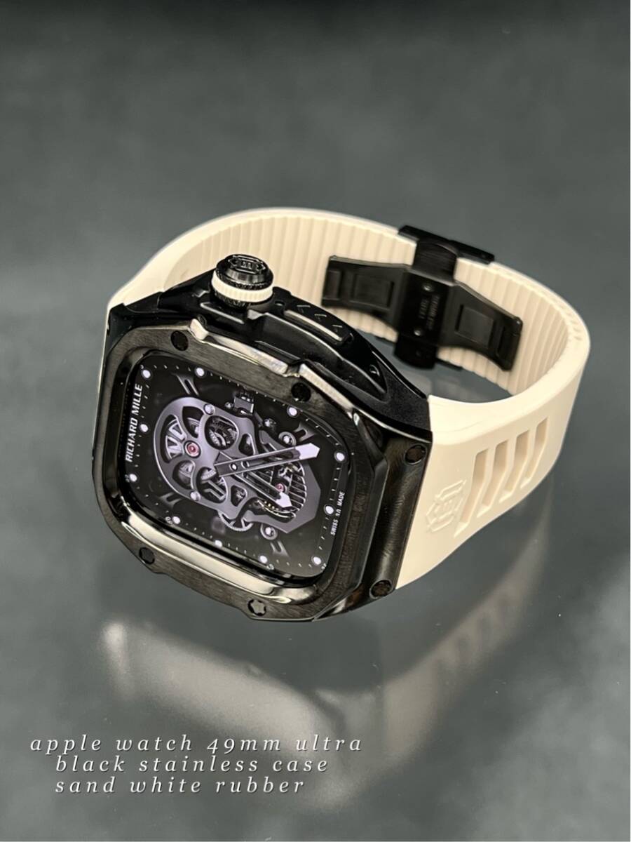 アップルウォッチ ブラック ステンレス ケース サンドホワイト ラバー ベルト applewatch 49mm ウルトラ用 ゴールデンコンセプト