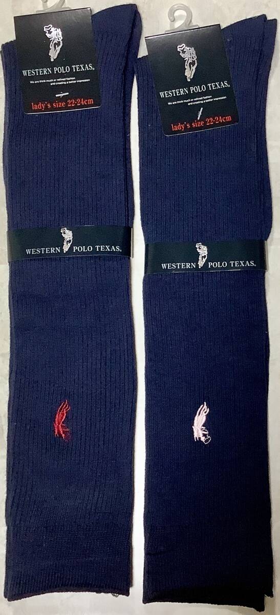 WESTERN POLO TEXAS 紺ハイソックス ネイビー 22-24cm/送185〜