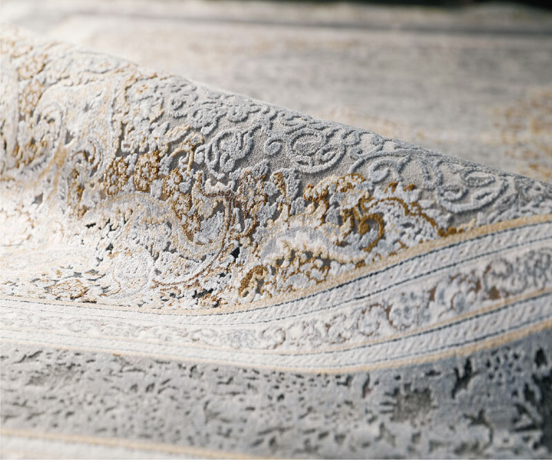 レーヨンの煌びやかな光沢と柔らかいタッチが魅力のエレガンスラグ。200万ポイントの高密度で織られながらもしなやかさを併せ持つ贅沢な一枚に仕上がりました。