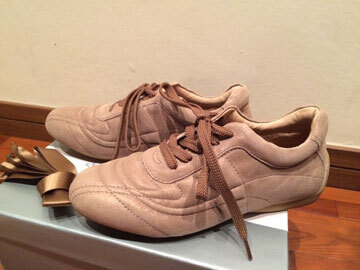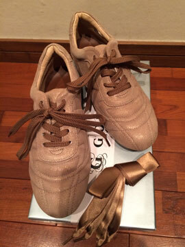 再↓秋★GOHANゴハン★2WAYリボンラメレースアップシューズ キャメル 35 スニーカー 百貨店購入